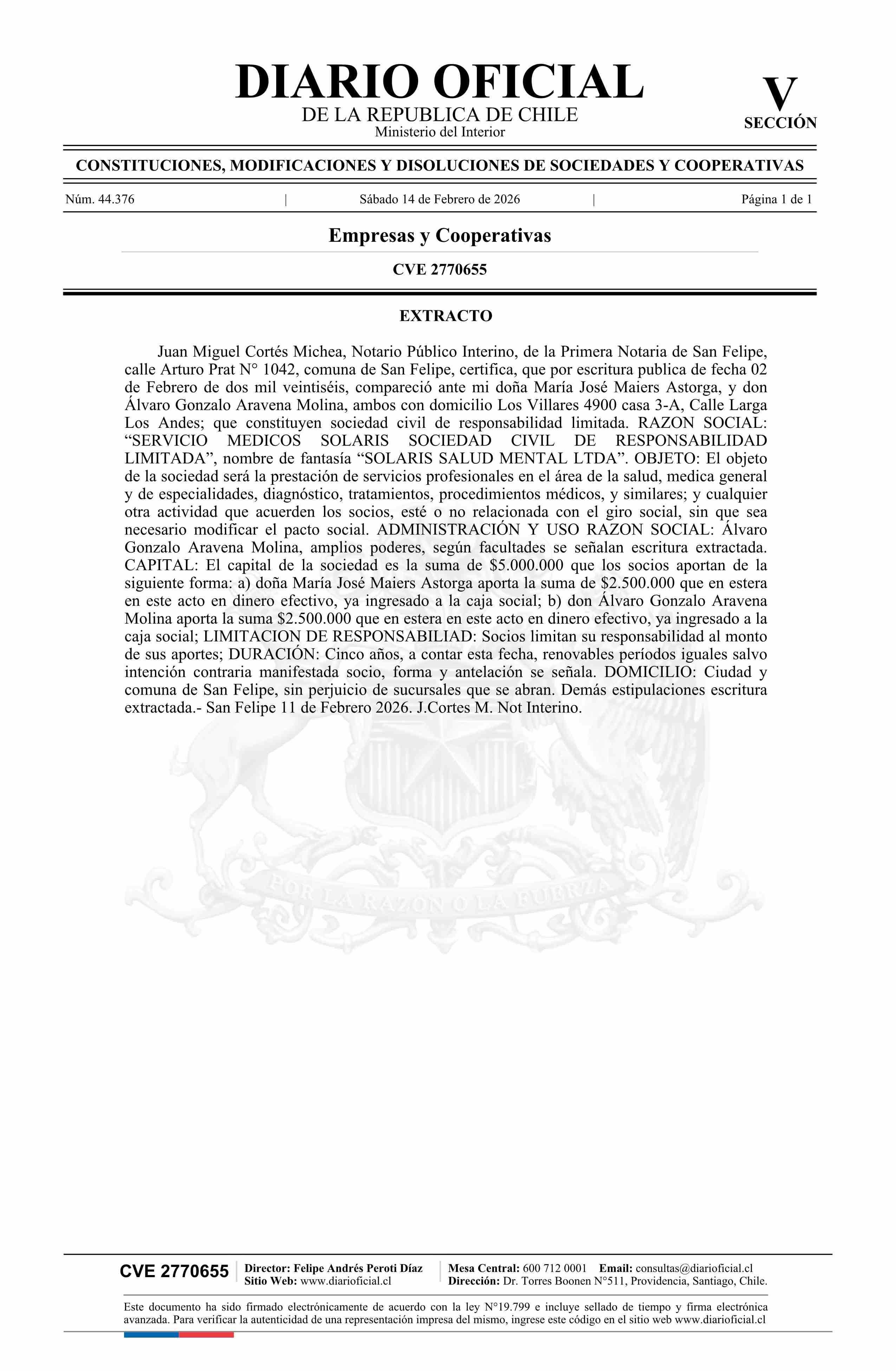 Título: SERVICIO MEDICOS SOLARIS SOCIEDAD CIVIL DE RESPONSABILIDAD LIMITADA