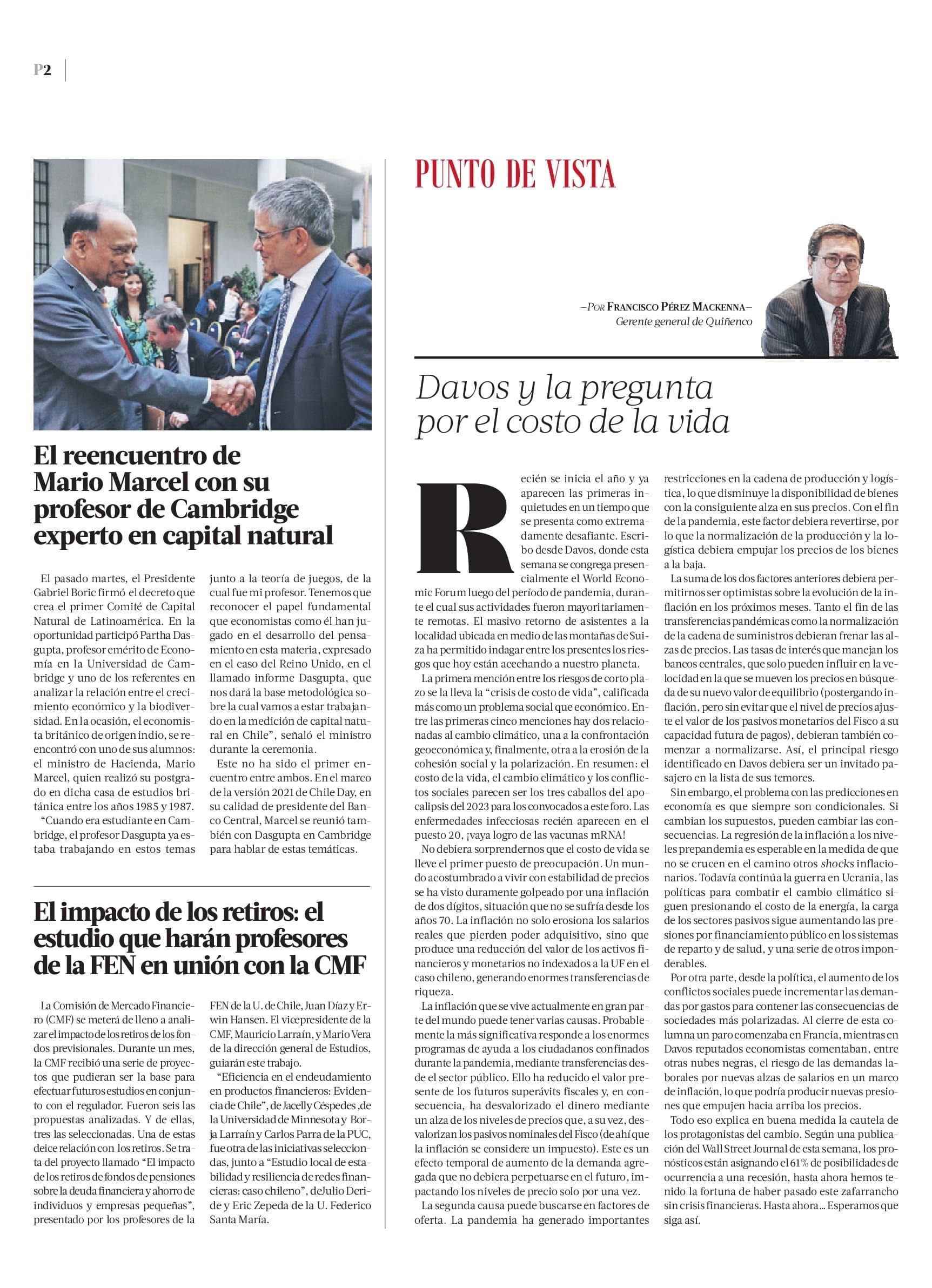 El impacto de los retiros: el estudio que harán profesores de la FEN en unión con la CMF 22-01-2023 La Tercera |