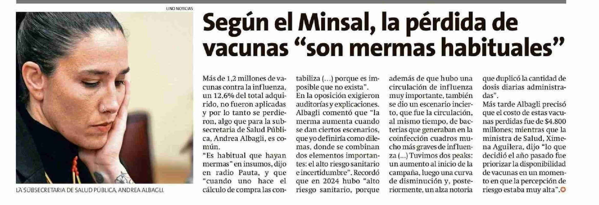| Título: | Según el Minsal, la pérdida de vacunas “son mermas habituales” |
