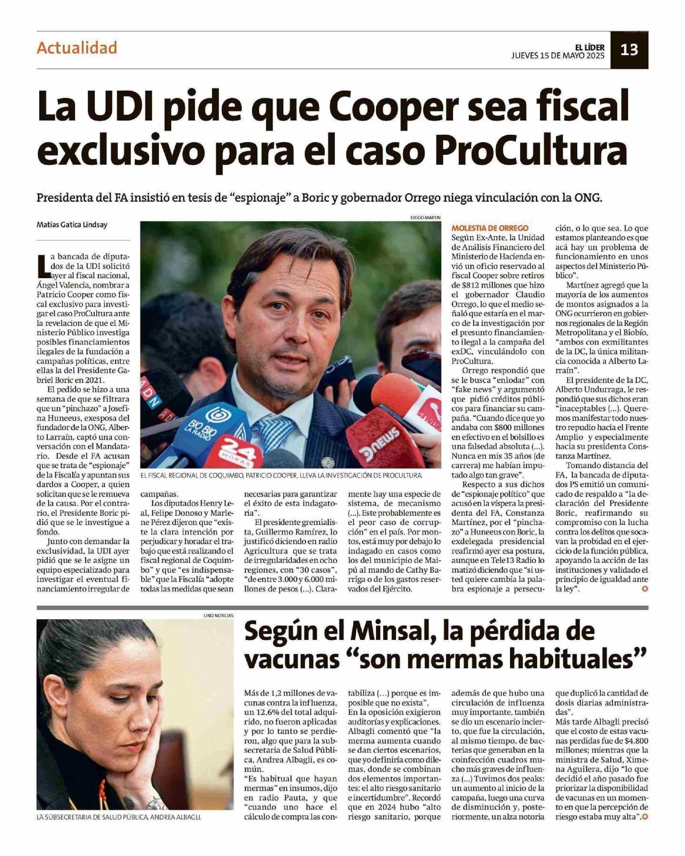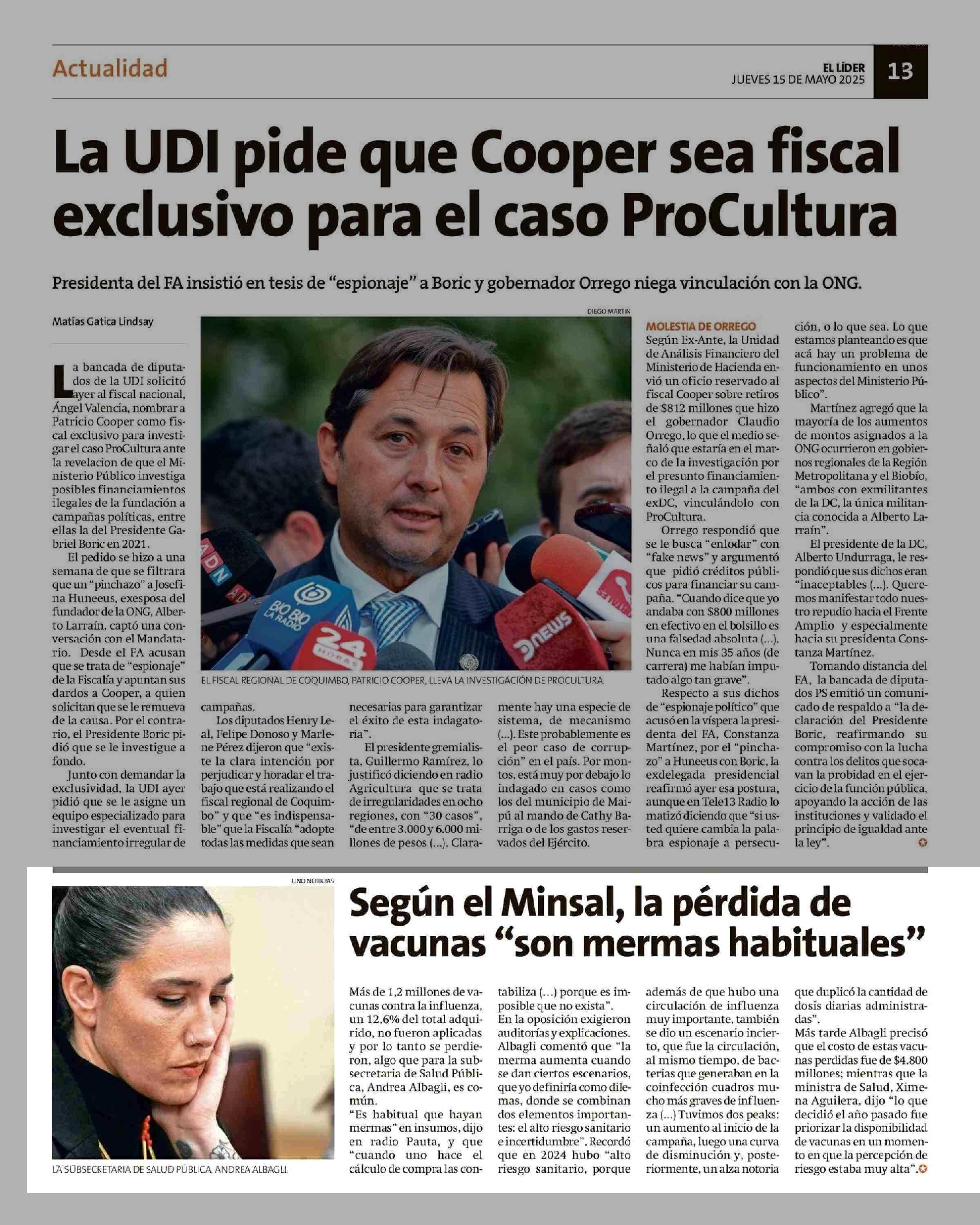 Según el Minsal, la pérdida de vacunas “son mermas habituales” 15-05-2025 El Líder |