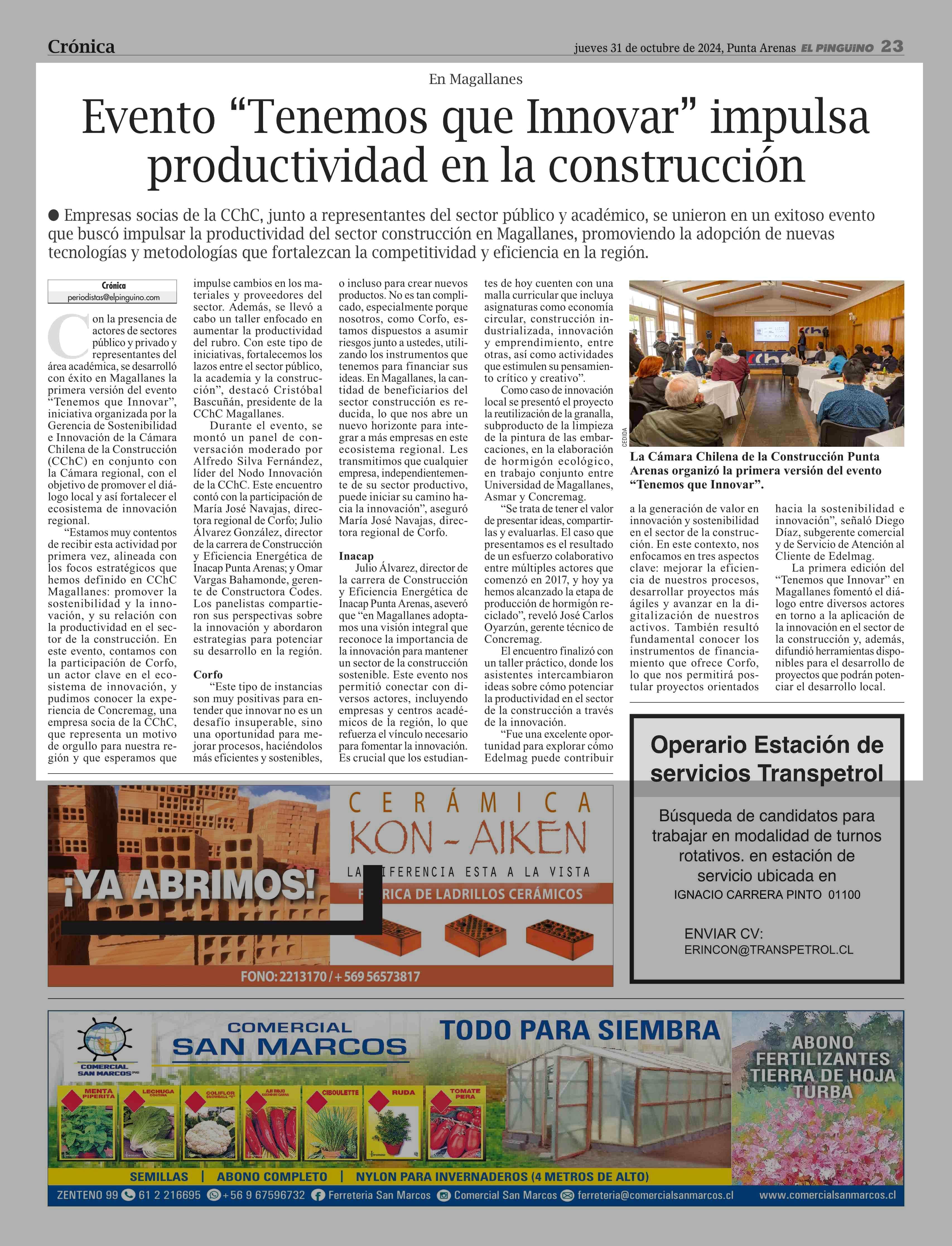 Evento “Tenemos que Innovar” impulsa productividad en la construcción 31-10-2024 El Pingüino |