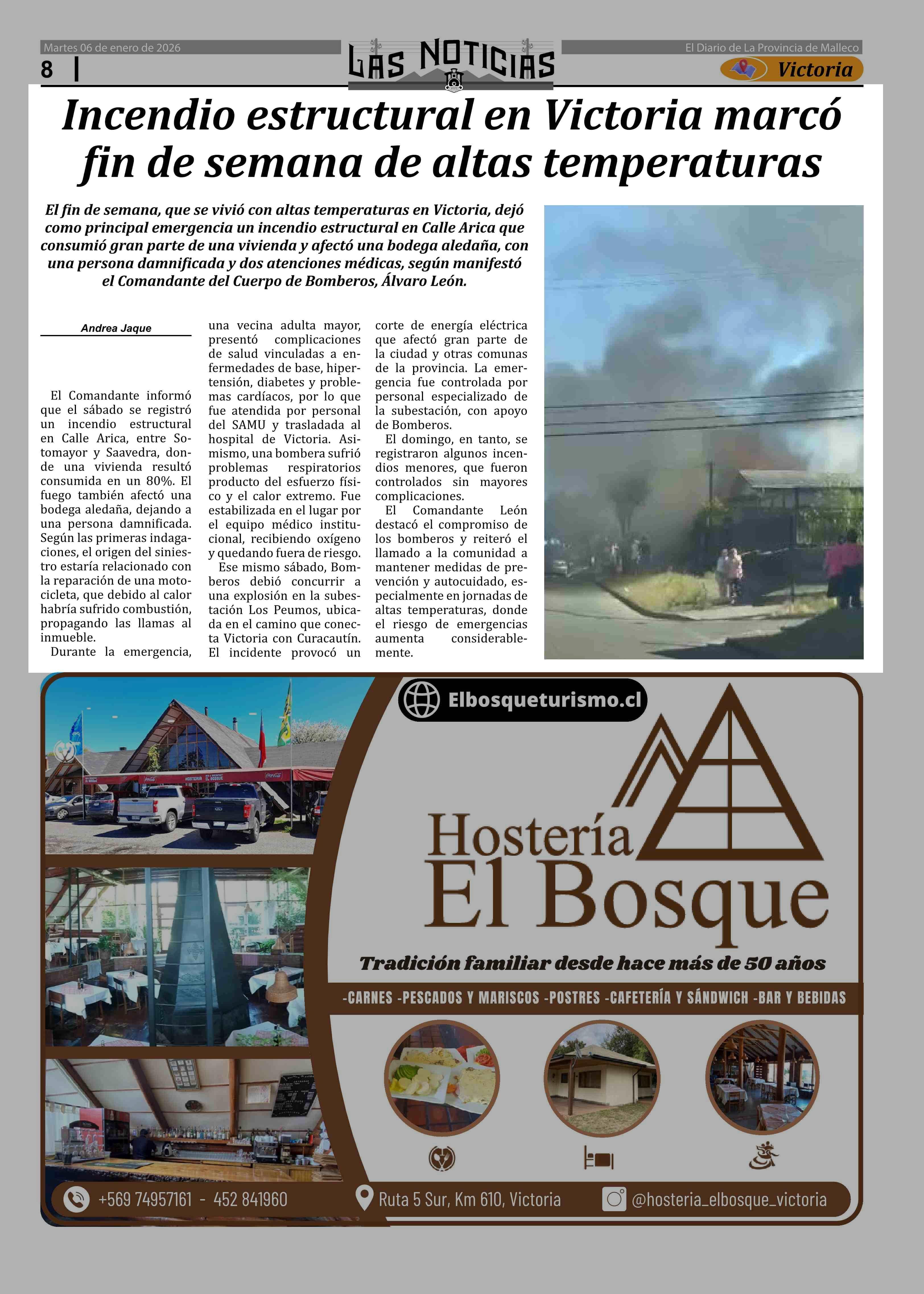Incendio estructural en Victoria marcó fin de semana de altas temperaturas 06-01-2026 Las Noticias |
