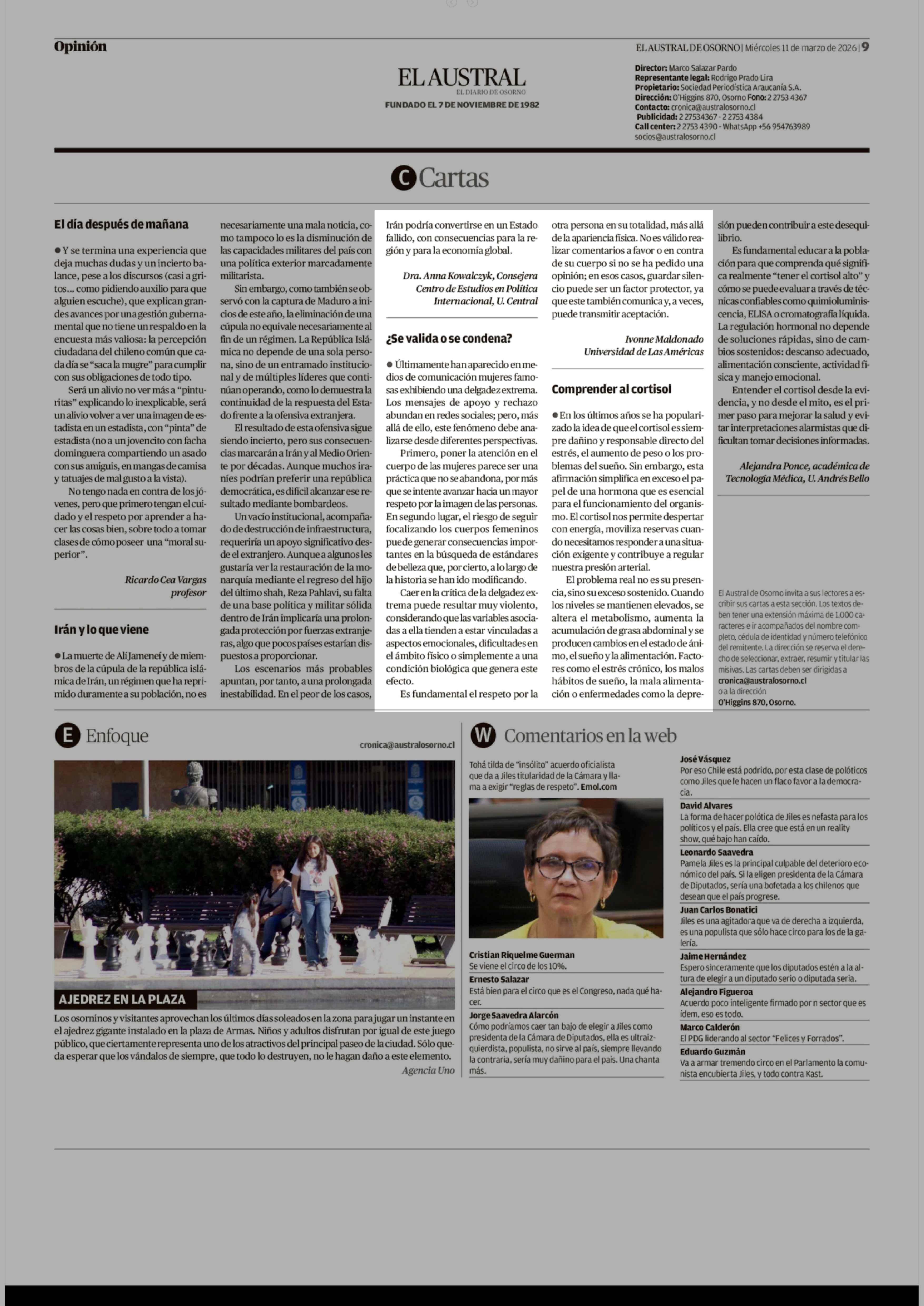 Cartas: ¿Se valida o se condena? 11-03-2026 El Austral de Osorno |