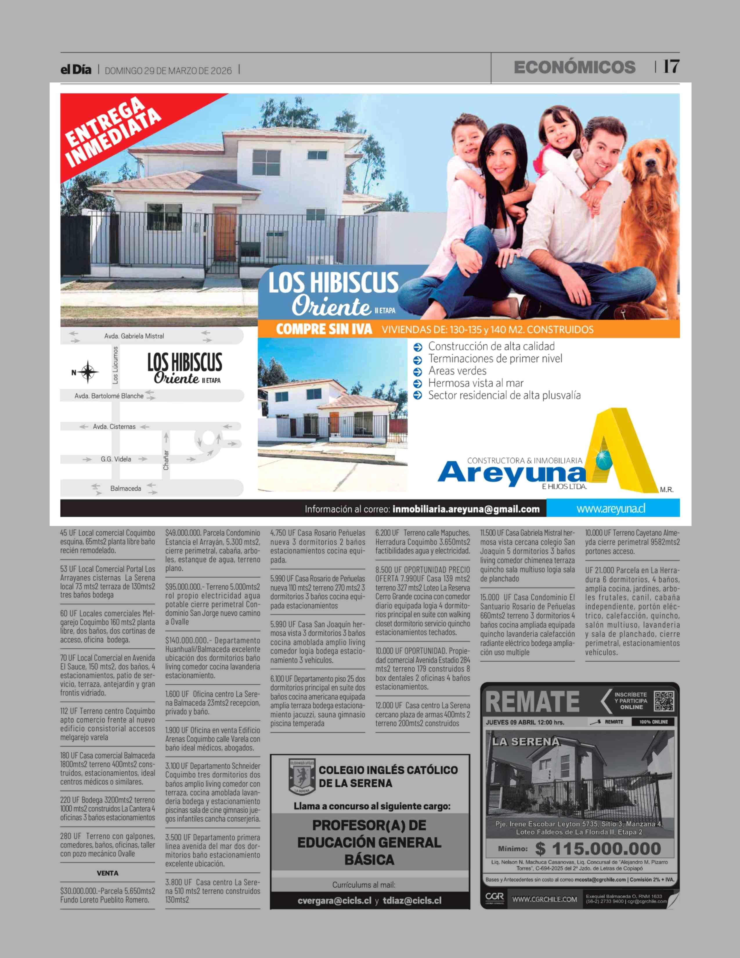 Aviso Inmobiliario: PUBLICIDAD 29-03-2026 El Día |