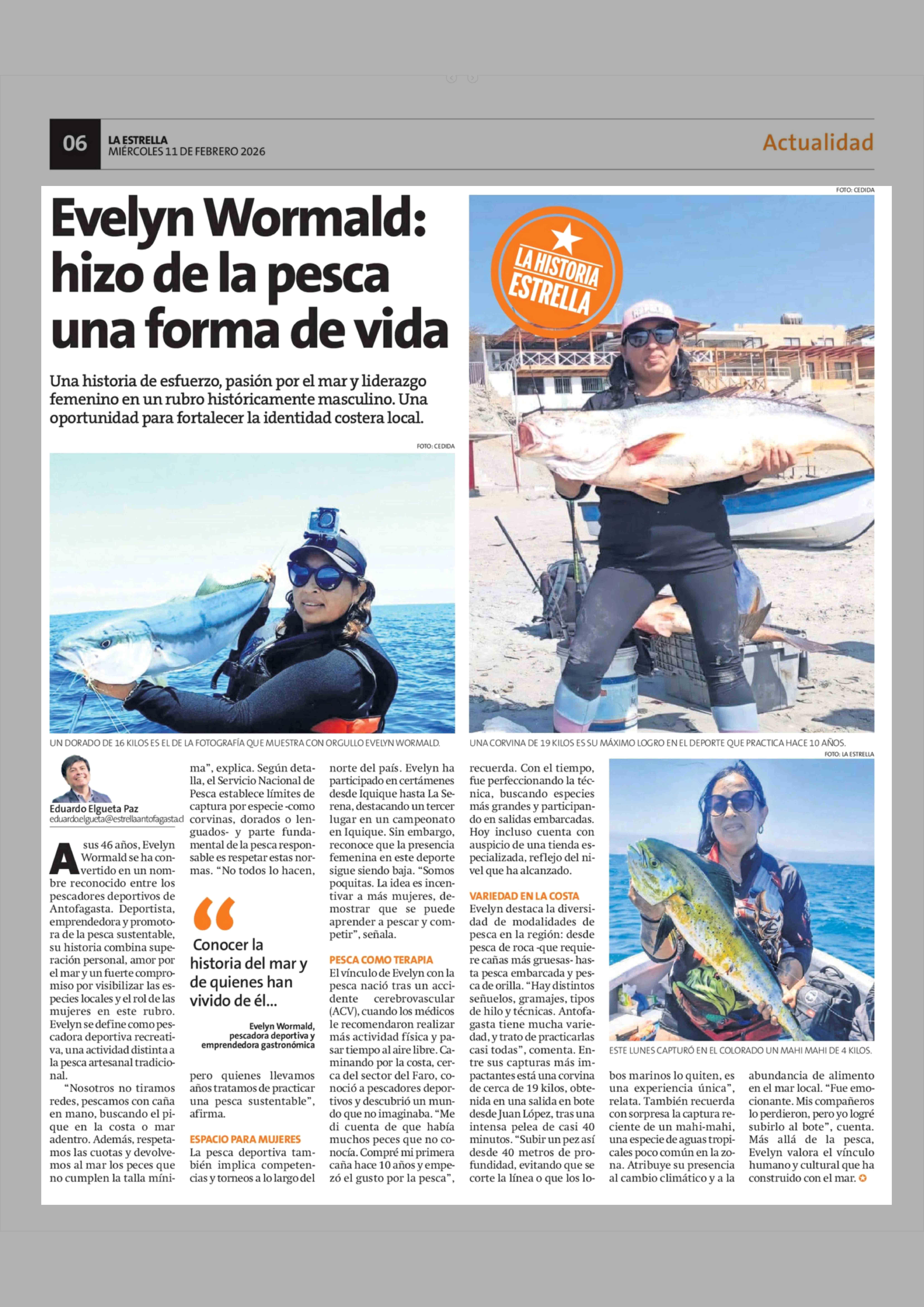 Evelyn Wormald: hizo de la pesca una forma de vida 11-02-2026 La Estrella de Antofagasta |