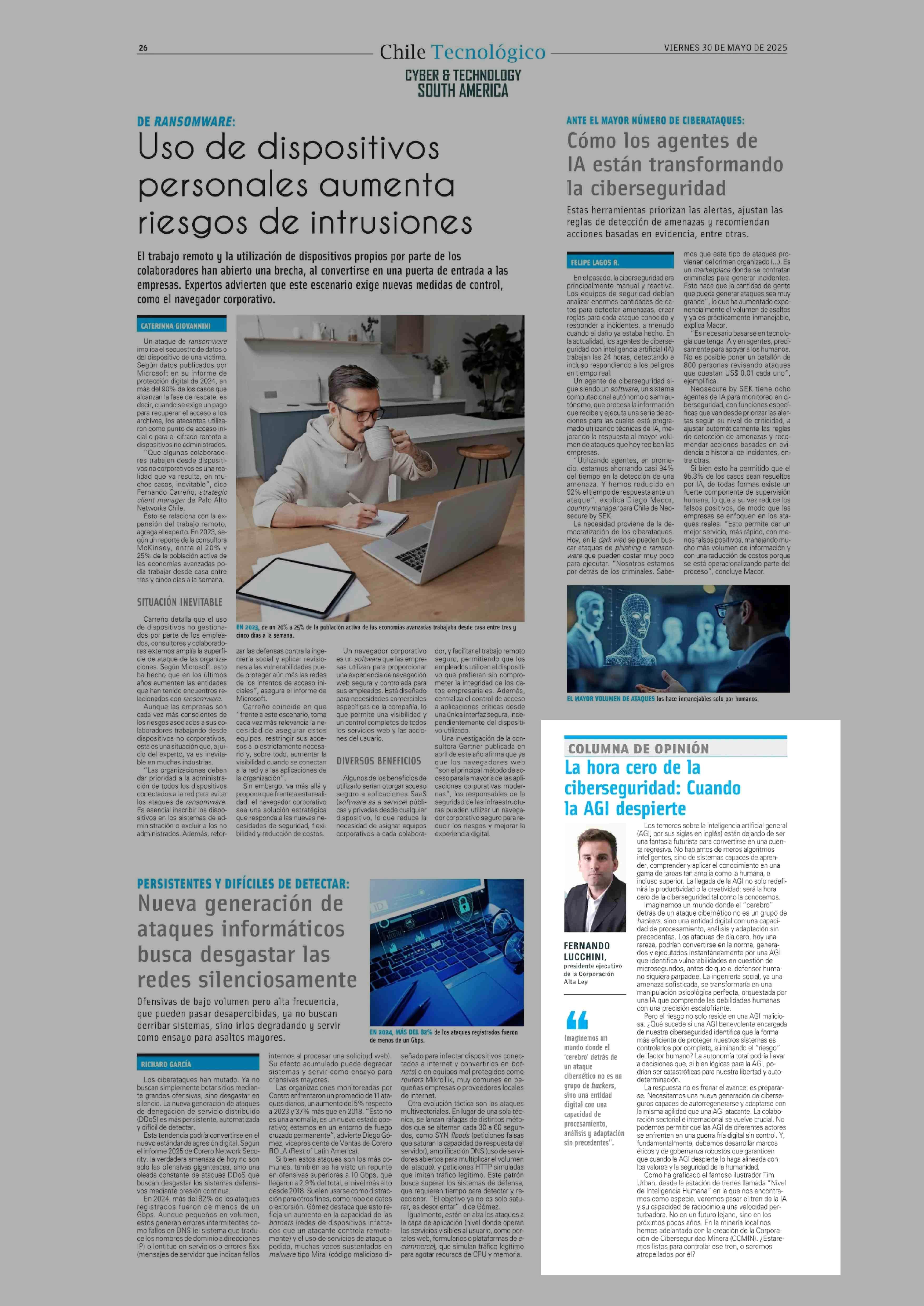 COLUMNAS DE OPINIÓN: La hora cero de la. ciberseguridad: Cuando la AGÍ despierte 30-05-2025 El Mercurio |