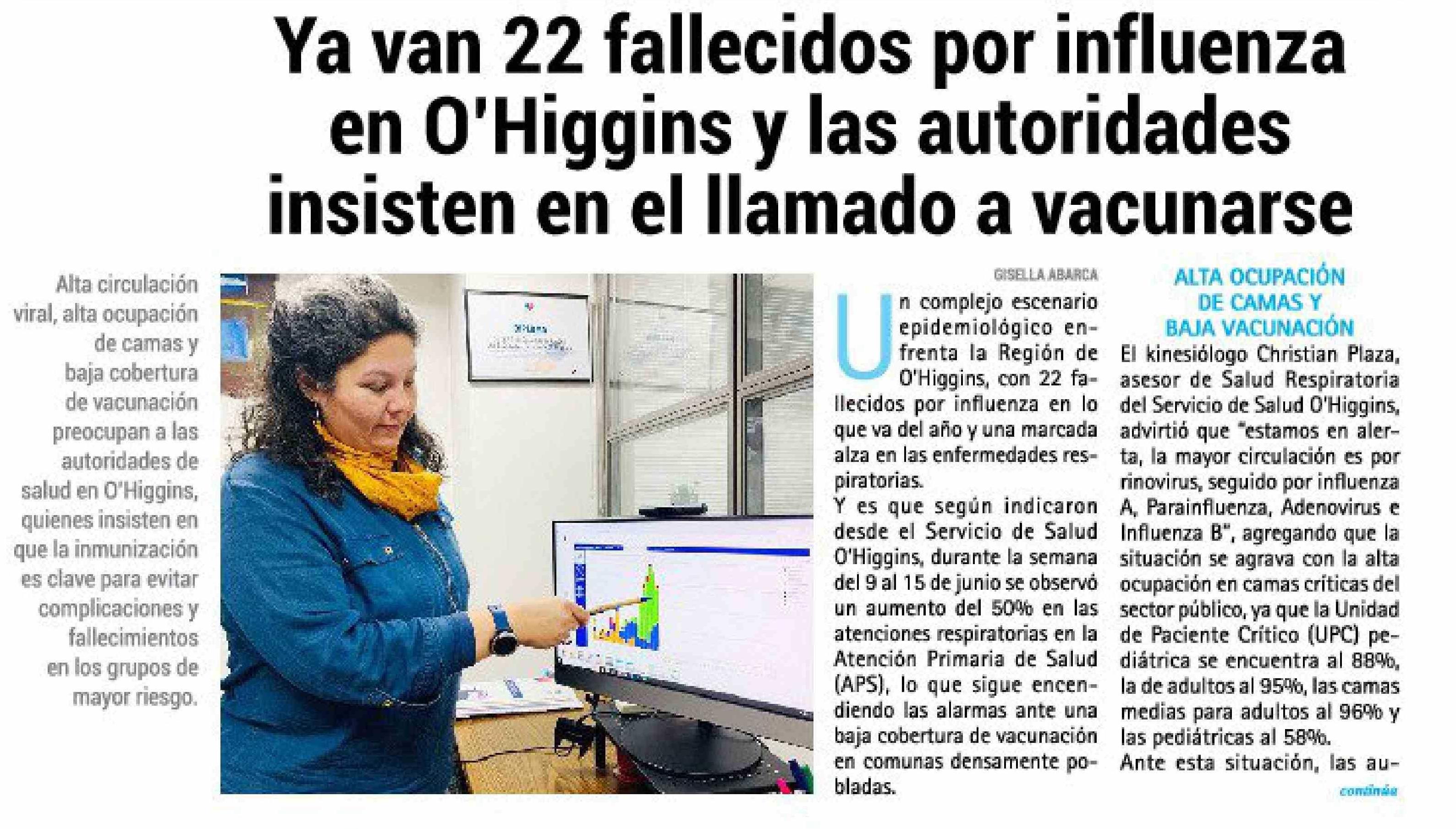 Ya van 22 fallecidos por influenza en O'Higgins y las autoridades insisten en el llamado a vacunarse 20-06-2025 El Rancagüino |