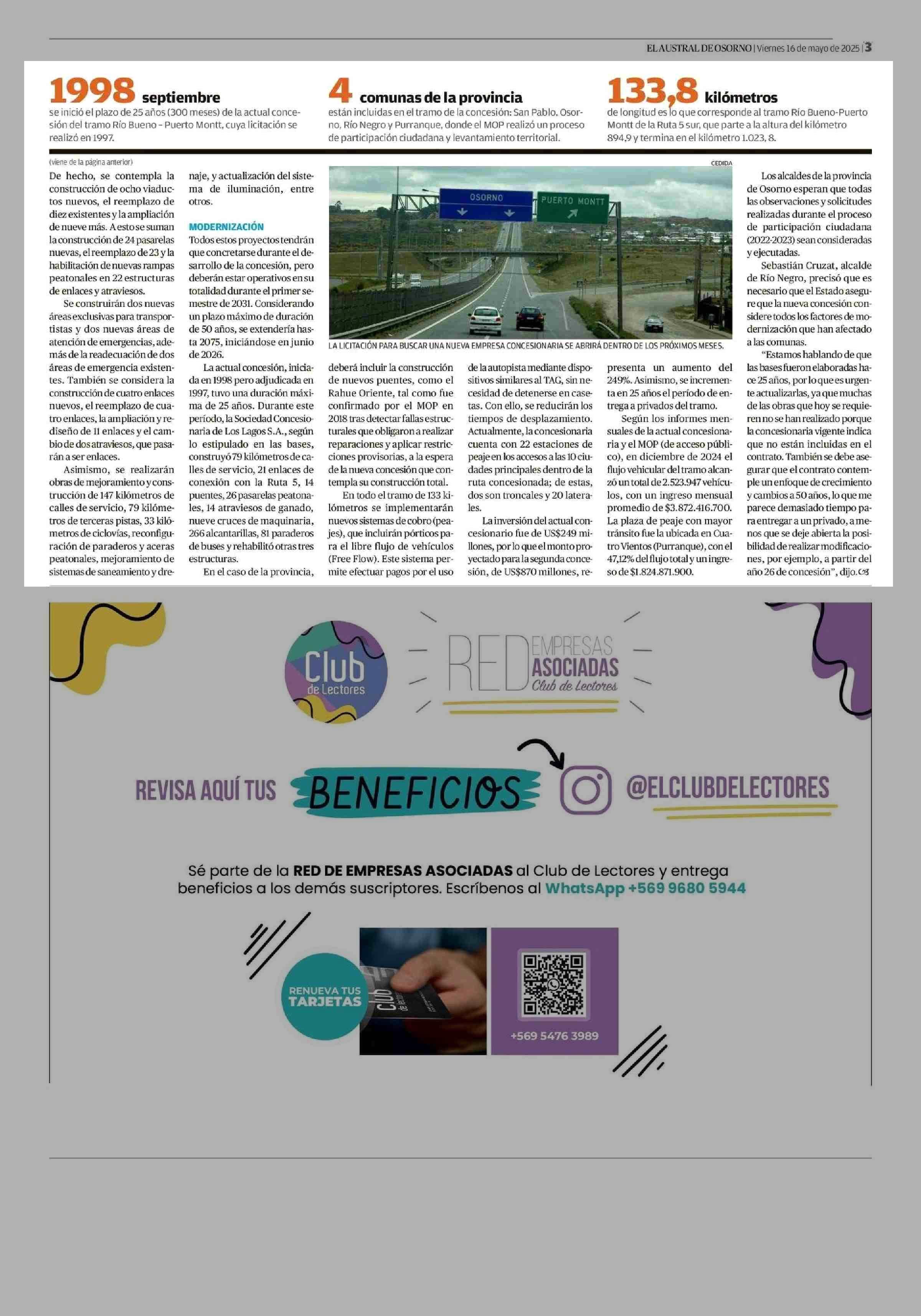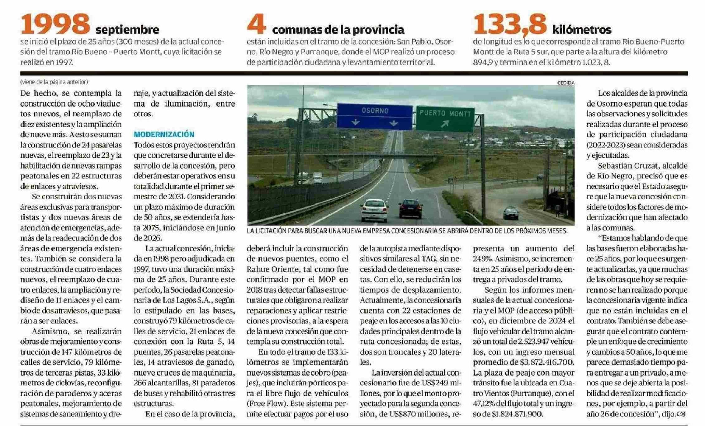 Nueva concesión de Ruta 5 tendrá una inversión de US$870 millones 16-05-2025 El Austral de Osorno |