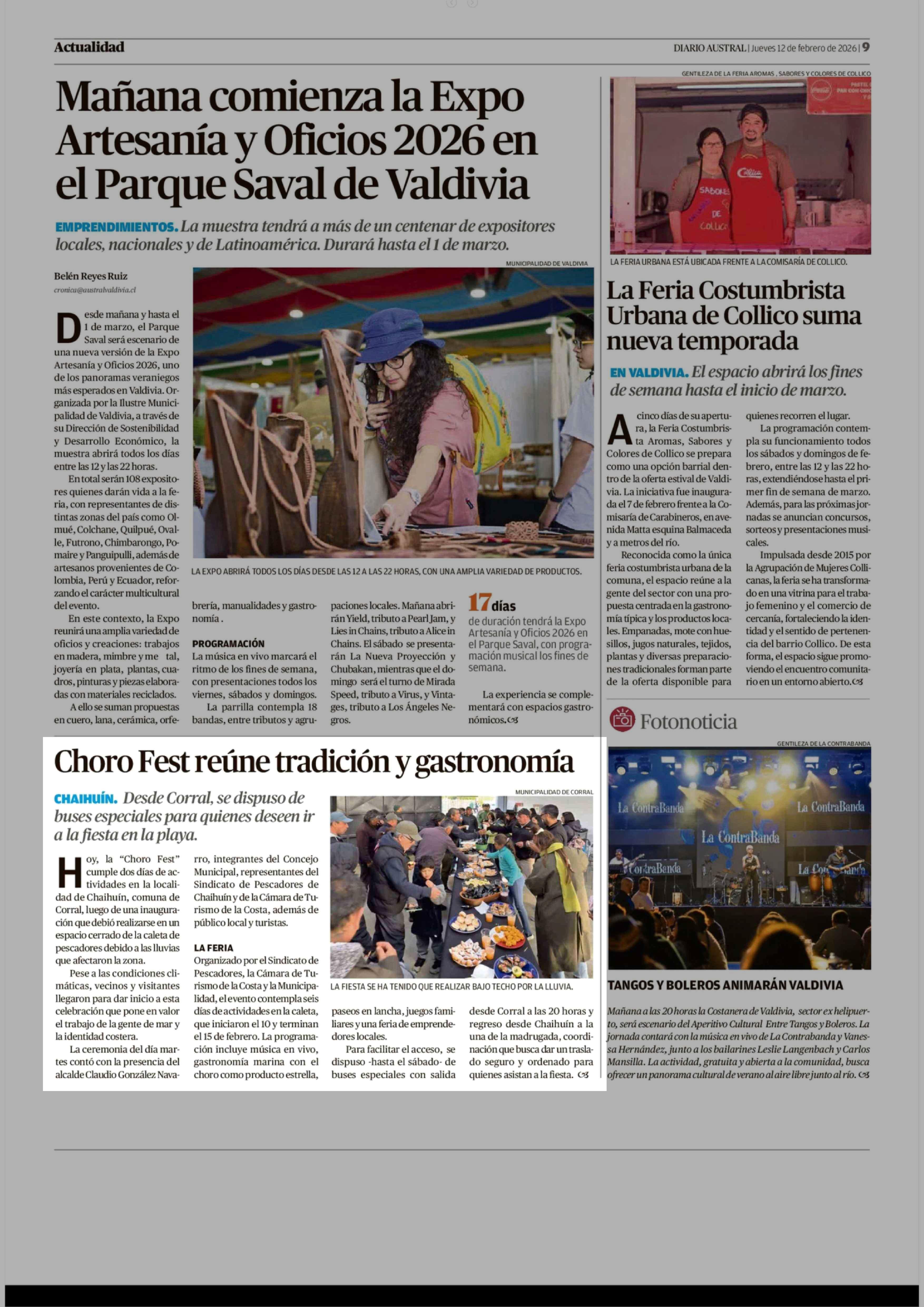 Choro Fest reúne tradición y gastronomía 12-02-2026 Diario Austral Región de Los Ríos |