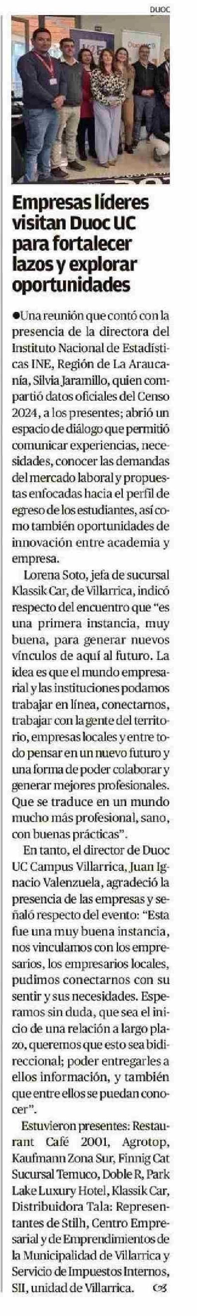 Empresas líderes visitan Duoc UC para fortalecer lazos y explorar oportunidades 08-06-2025 El Austral de la Araucanía |