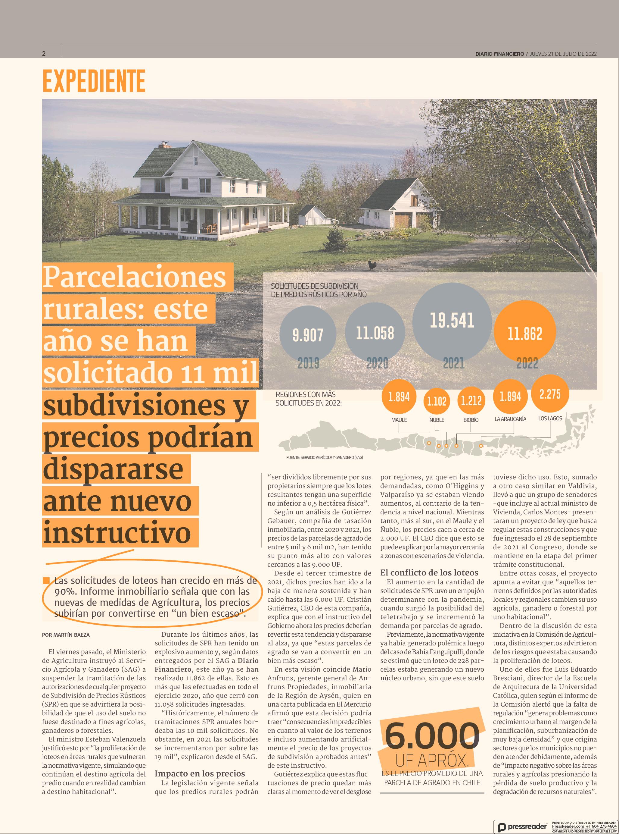 Título: Parcelaciones rurales: este año se han solicitado 11 mil subdivisiones y precios podrían dispararse ante nuevo instructivo