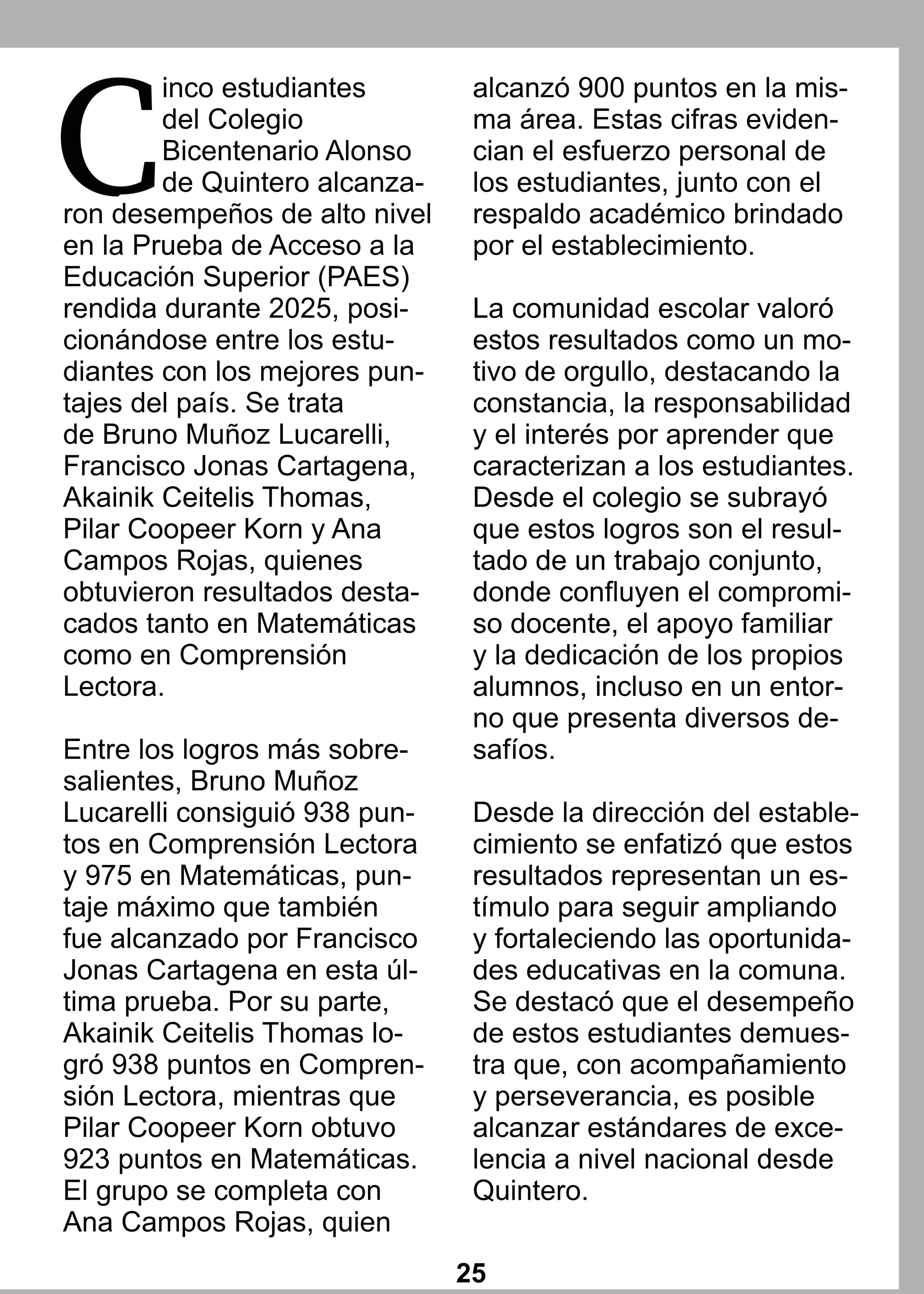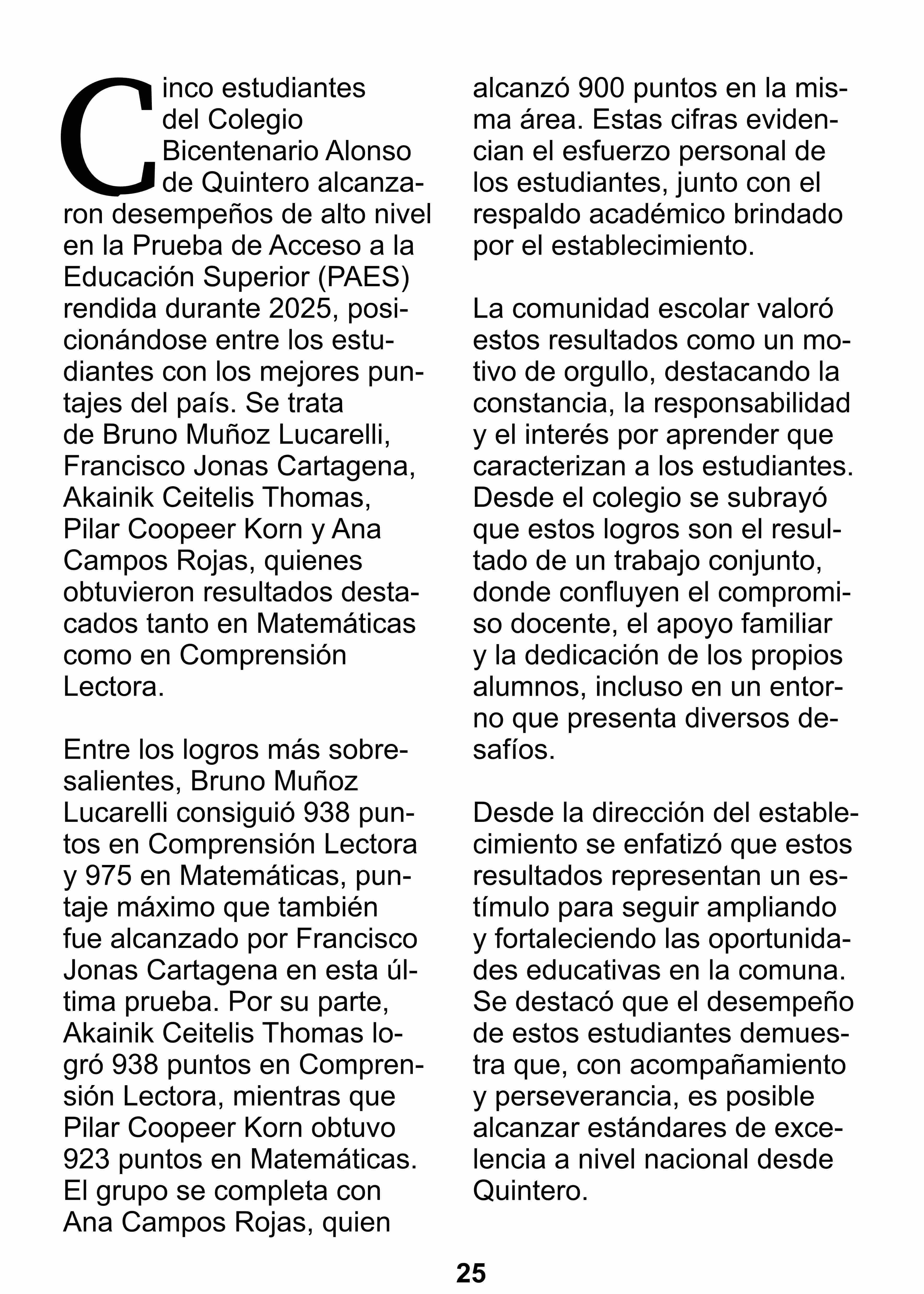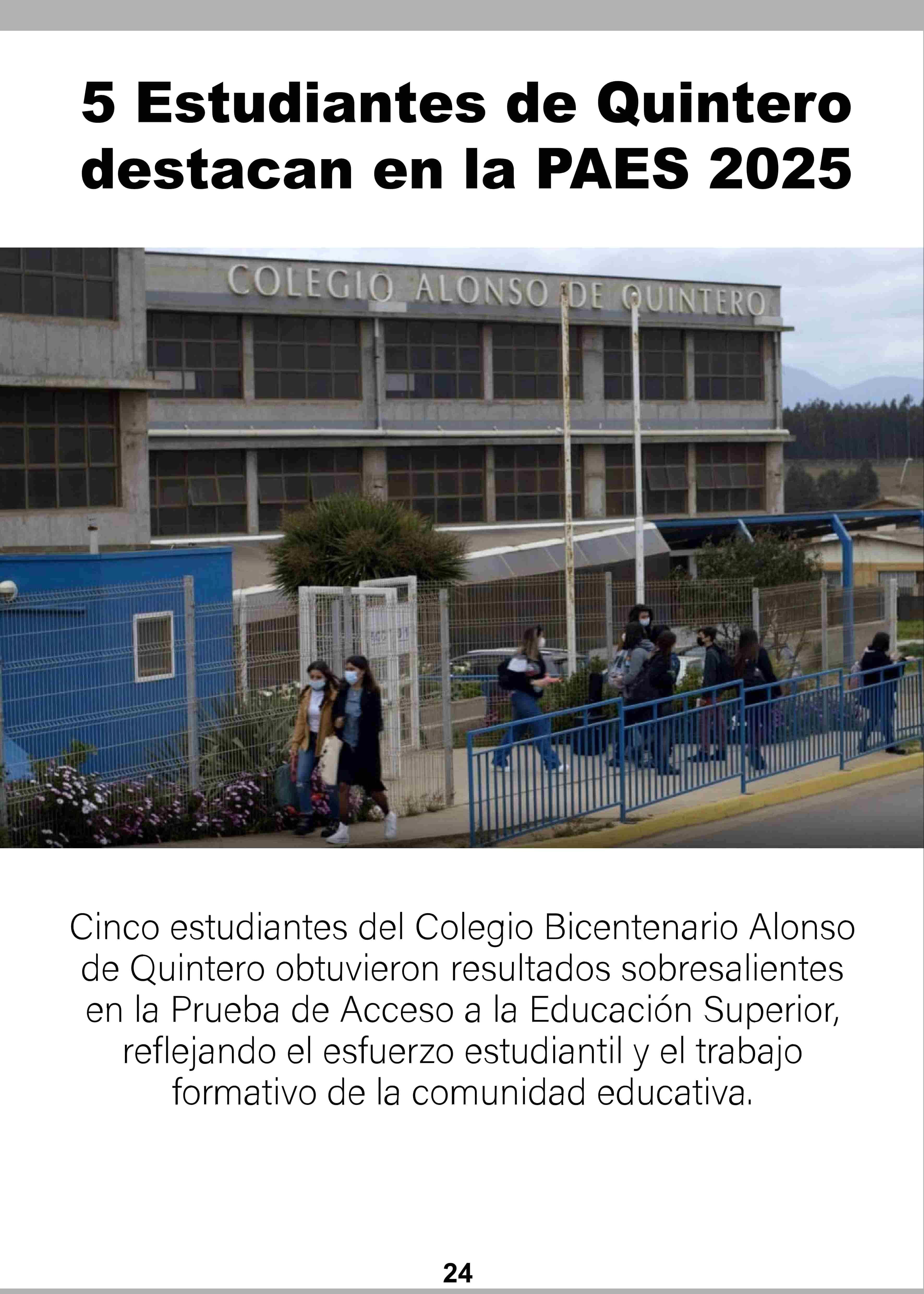 | Título: | 5 Estudiantes de Quintero destacan en la PAES 2025 |