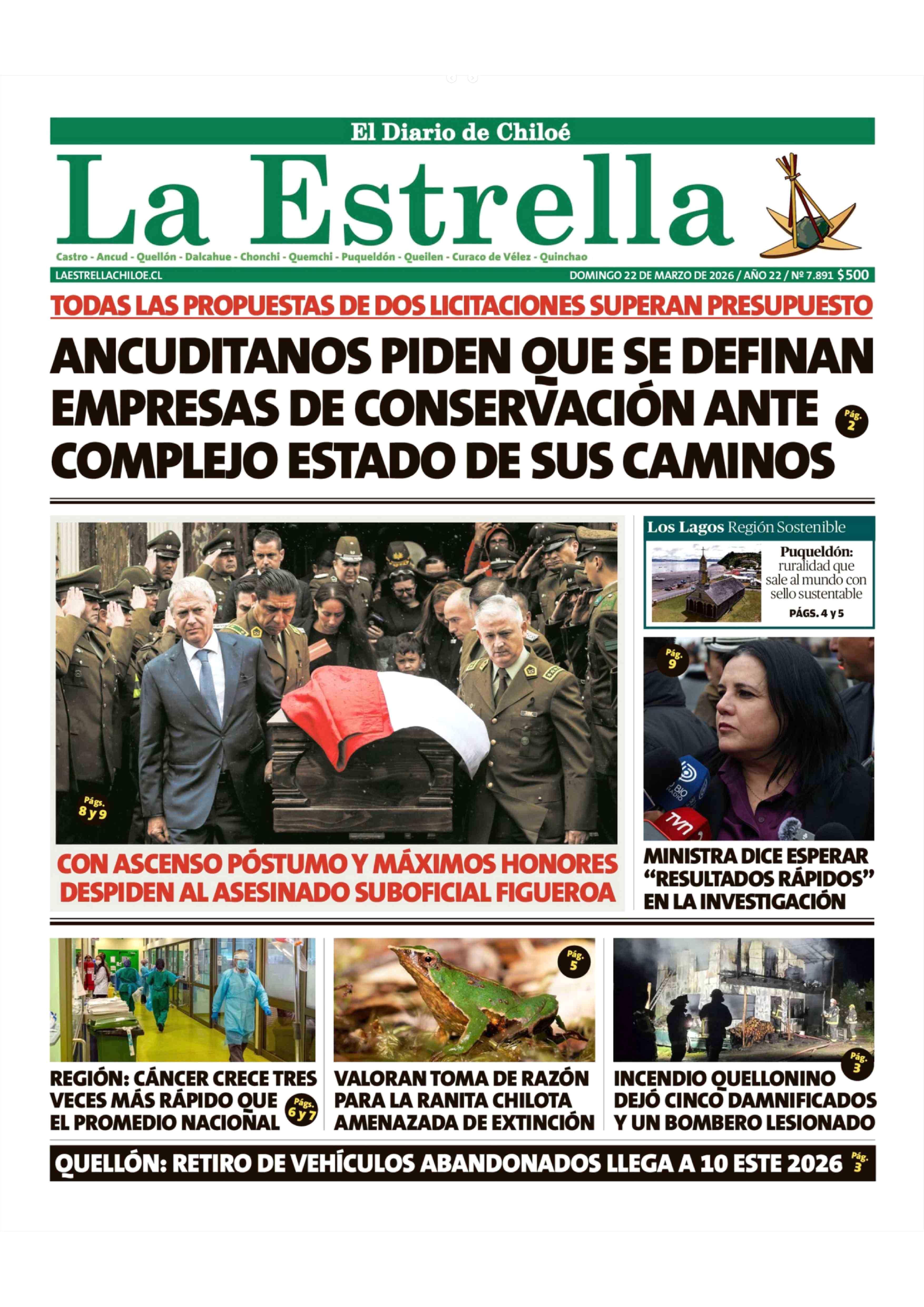 PORTADA LA ESTRELLA DE CHILOÉ CHILE 22-03-2026 La Estrella de Chiloé |