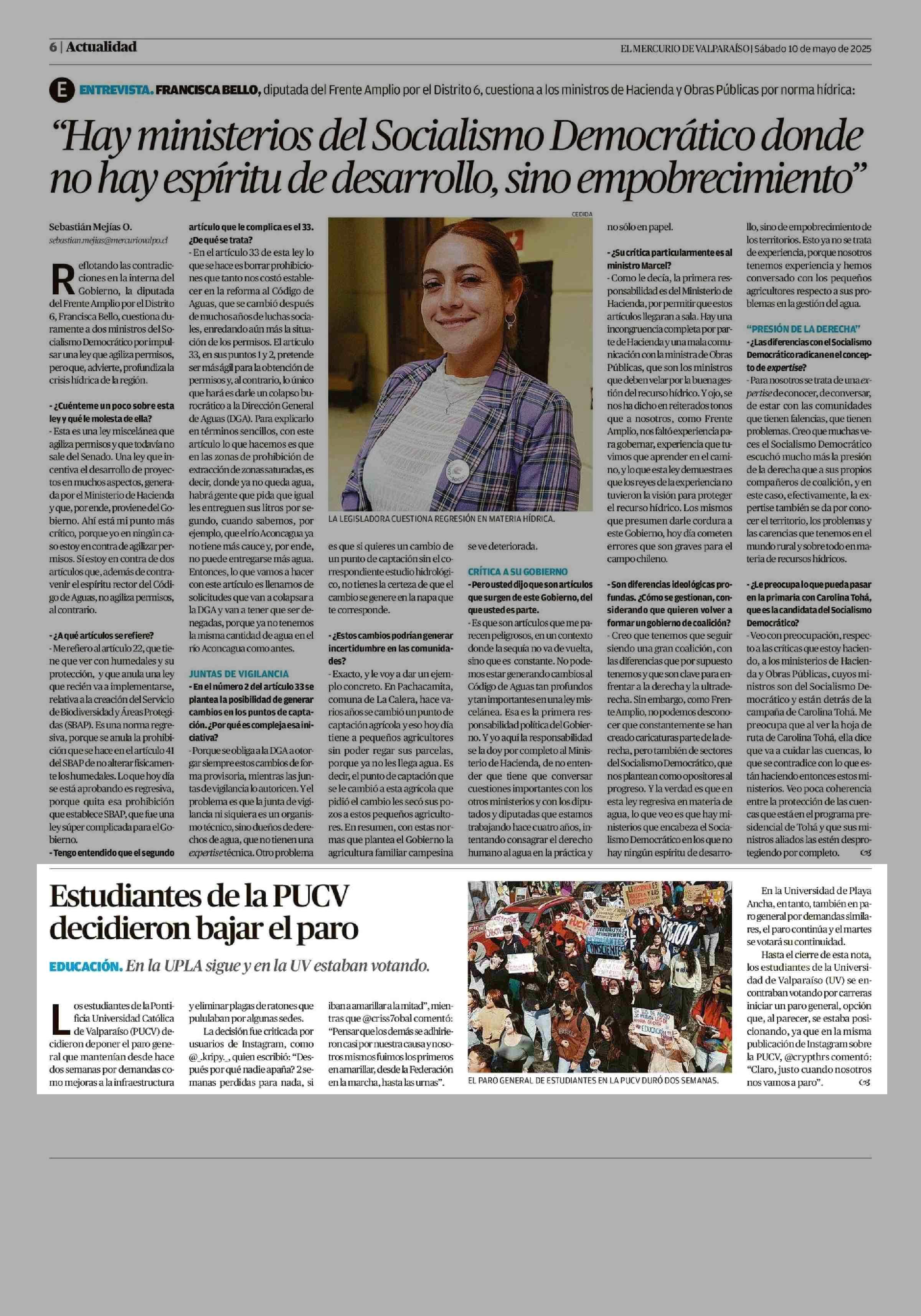 Estudiantes de la PUCV decidieron bajar el paro 10-05-2025 El Mercurio de Valparaíso |
