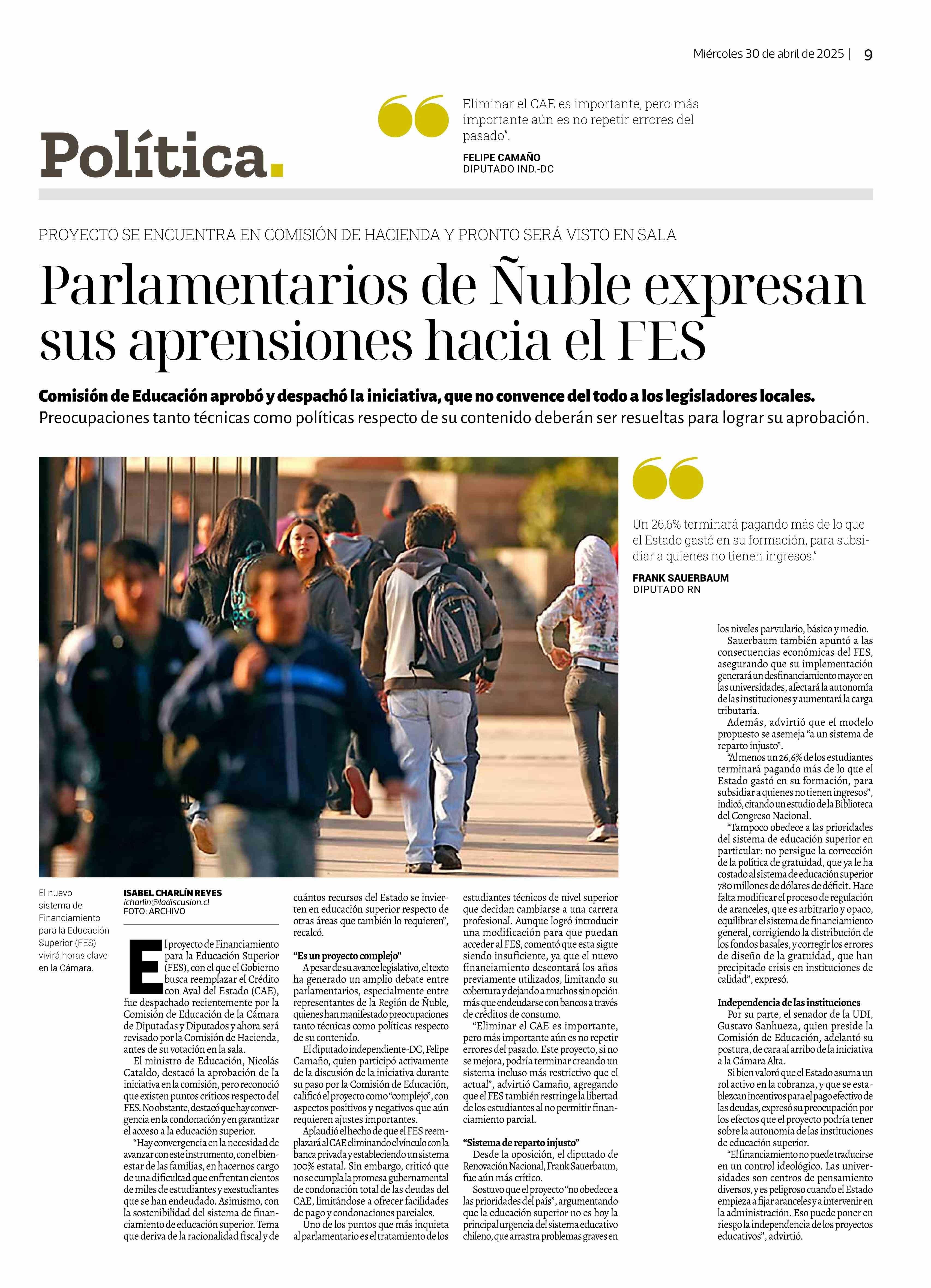 Parlamentarios de Ñuble expresan sus aprensiones hacia el FES 30-04-2025 La Discusión |