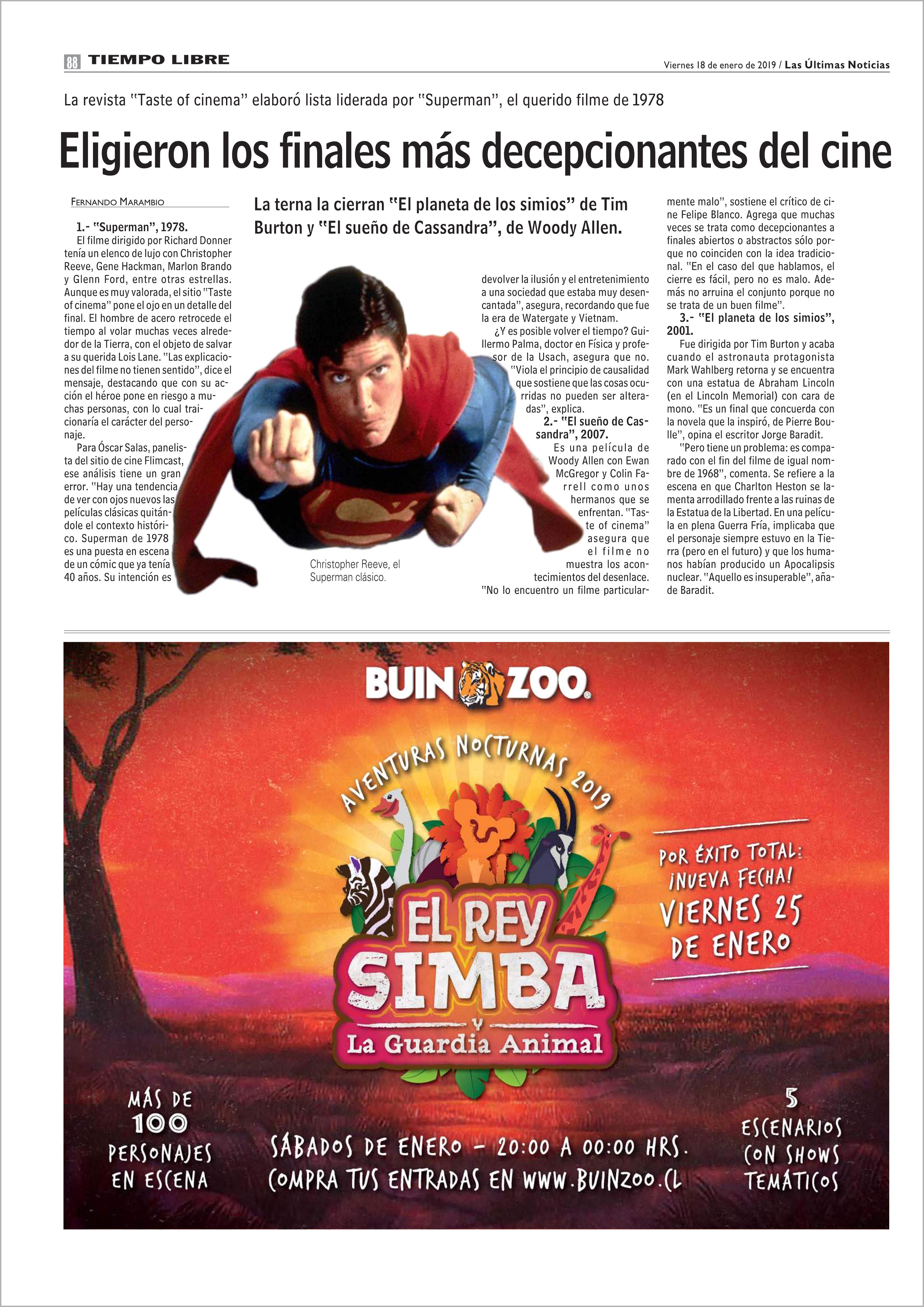 Eligieron los finales más decepcionantes del cine 18-01-2019 Las Últimas Noticias |