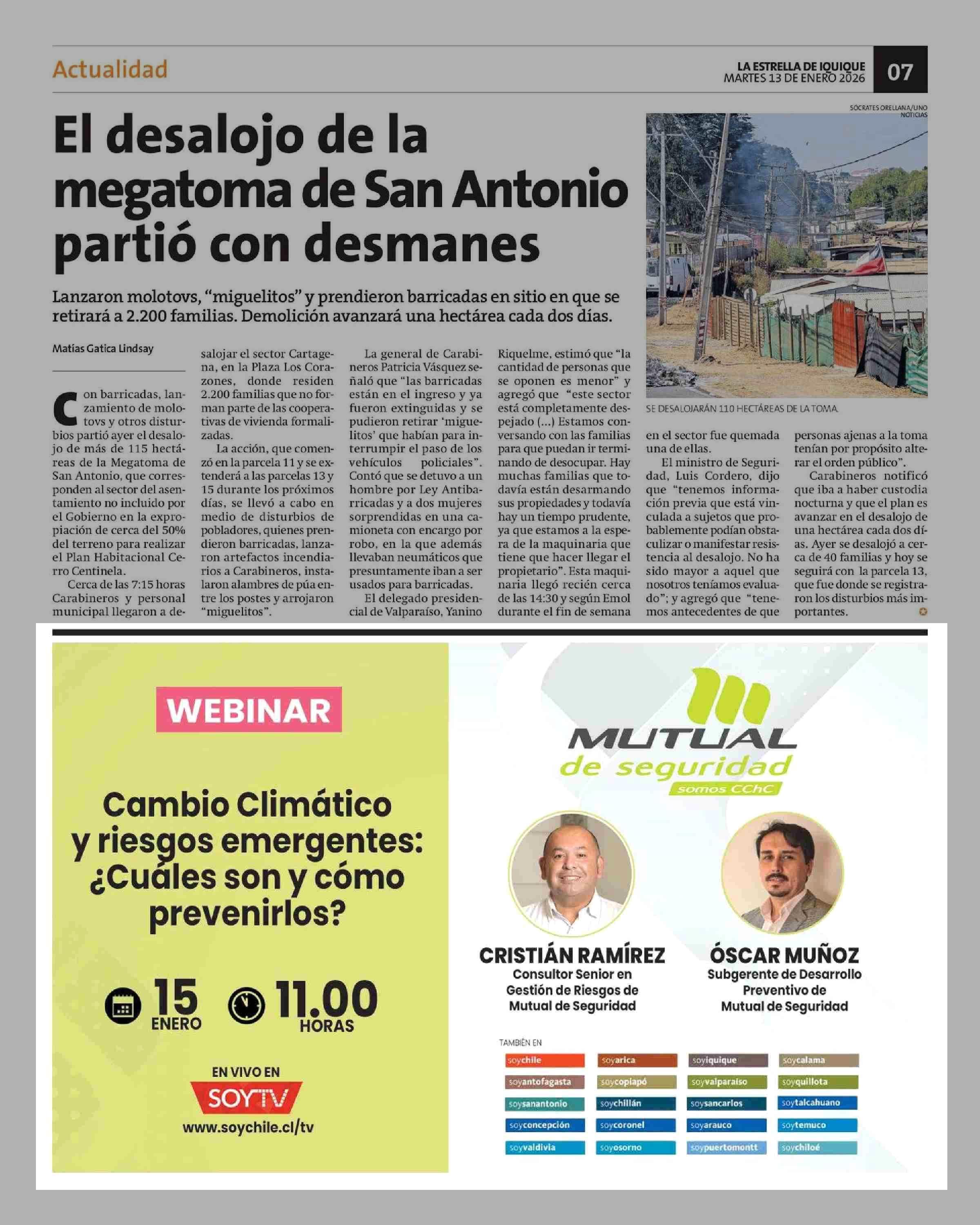 Aviso Publicitario: WEBINAR - MUTUAL DE SEGUIRDAD 13-01-2026 La Estrella de Iquique |