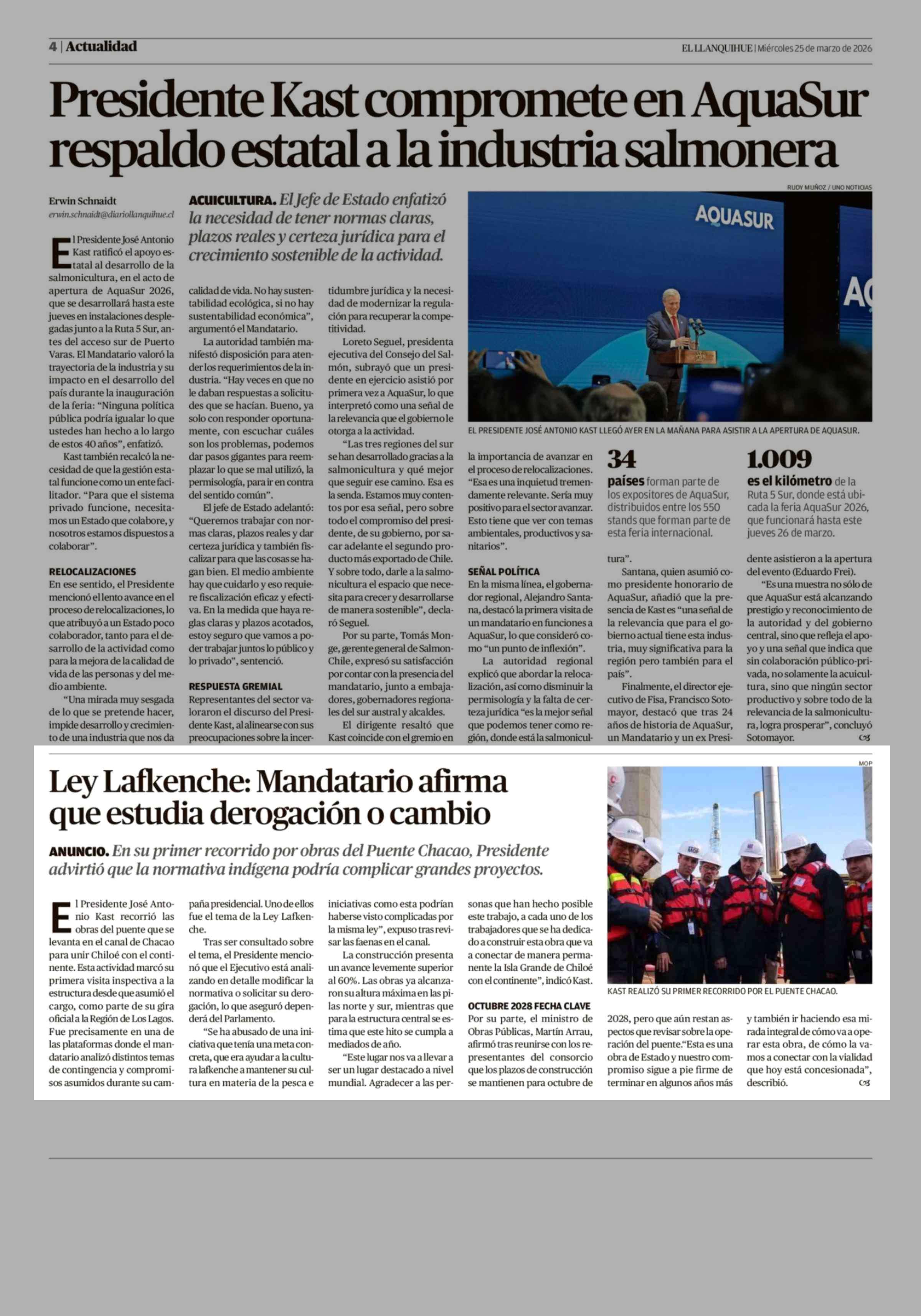 Ley Lafkenche: Mandatario afirma que estudia derogación o cambio 25-03-2026 El Llanquihue |