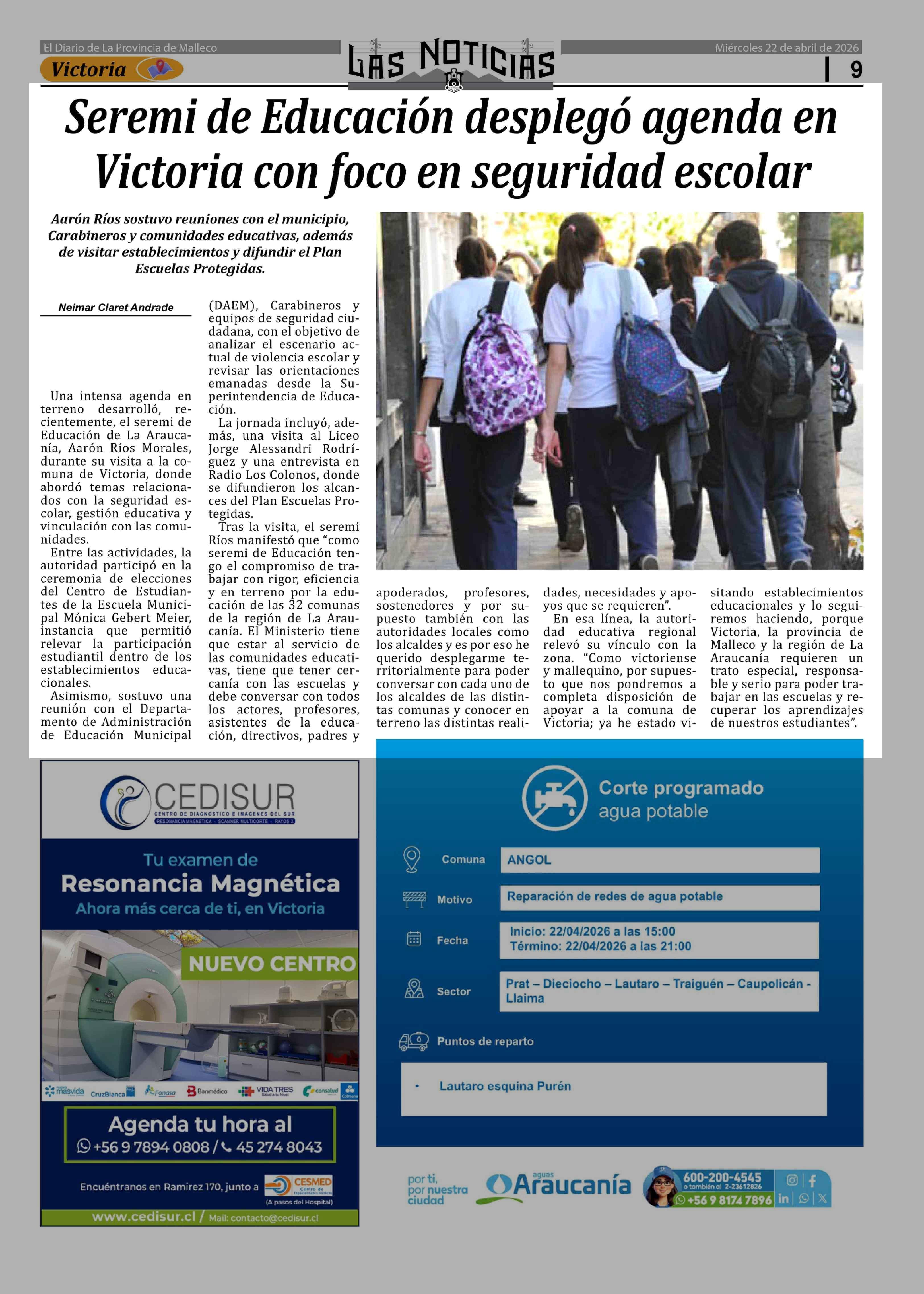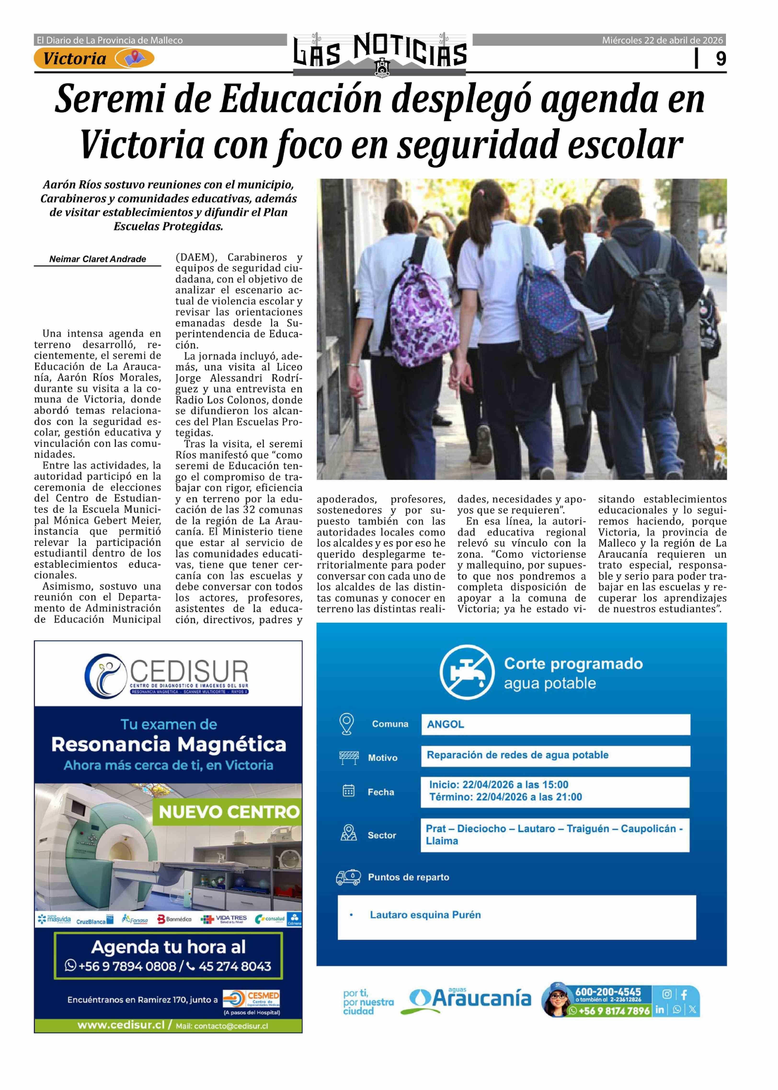 Seremi de Educación desplegó agenda en Victoria con foco en seguridad escolar 22-04-2026 Las Noticias |