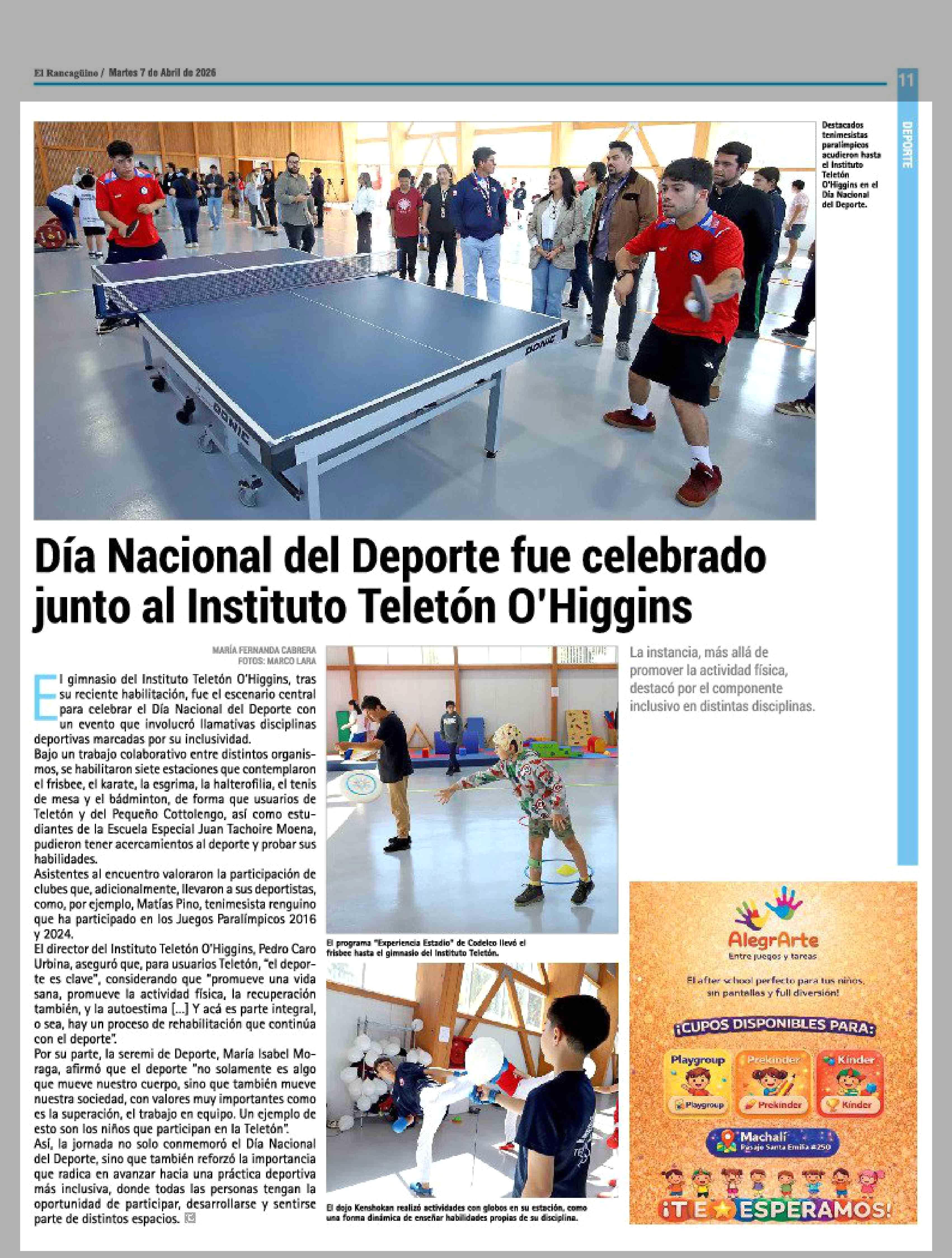 Día Nacional del Deporte fue celebrado junto al Instituto Teleton O'Higgins 07-04-2026 El Rancagüino |