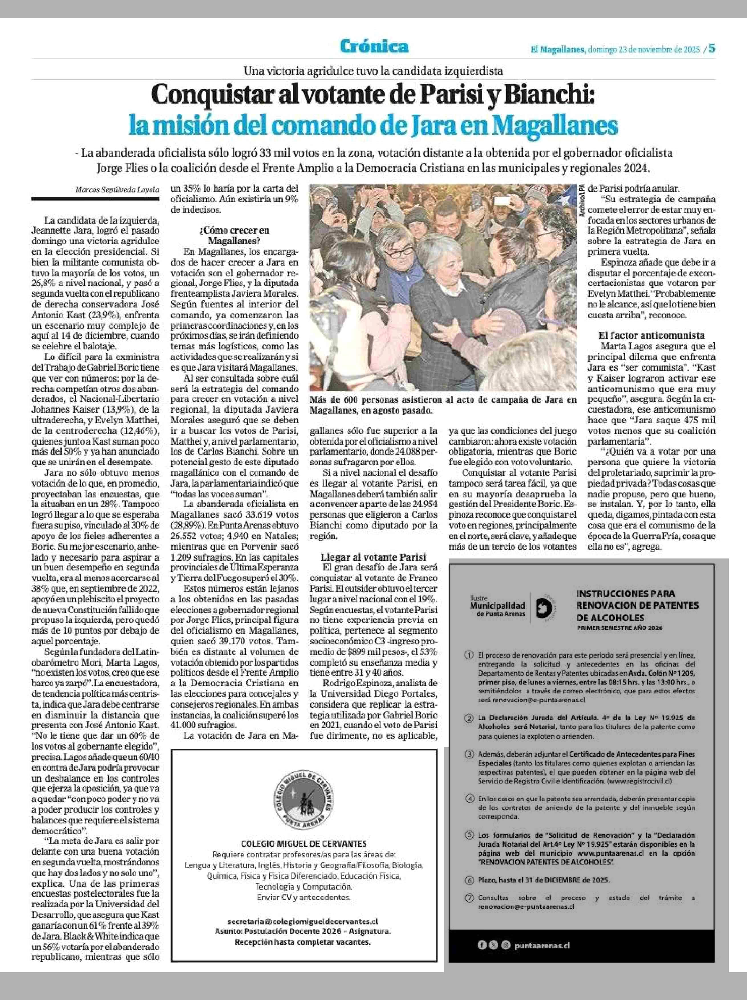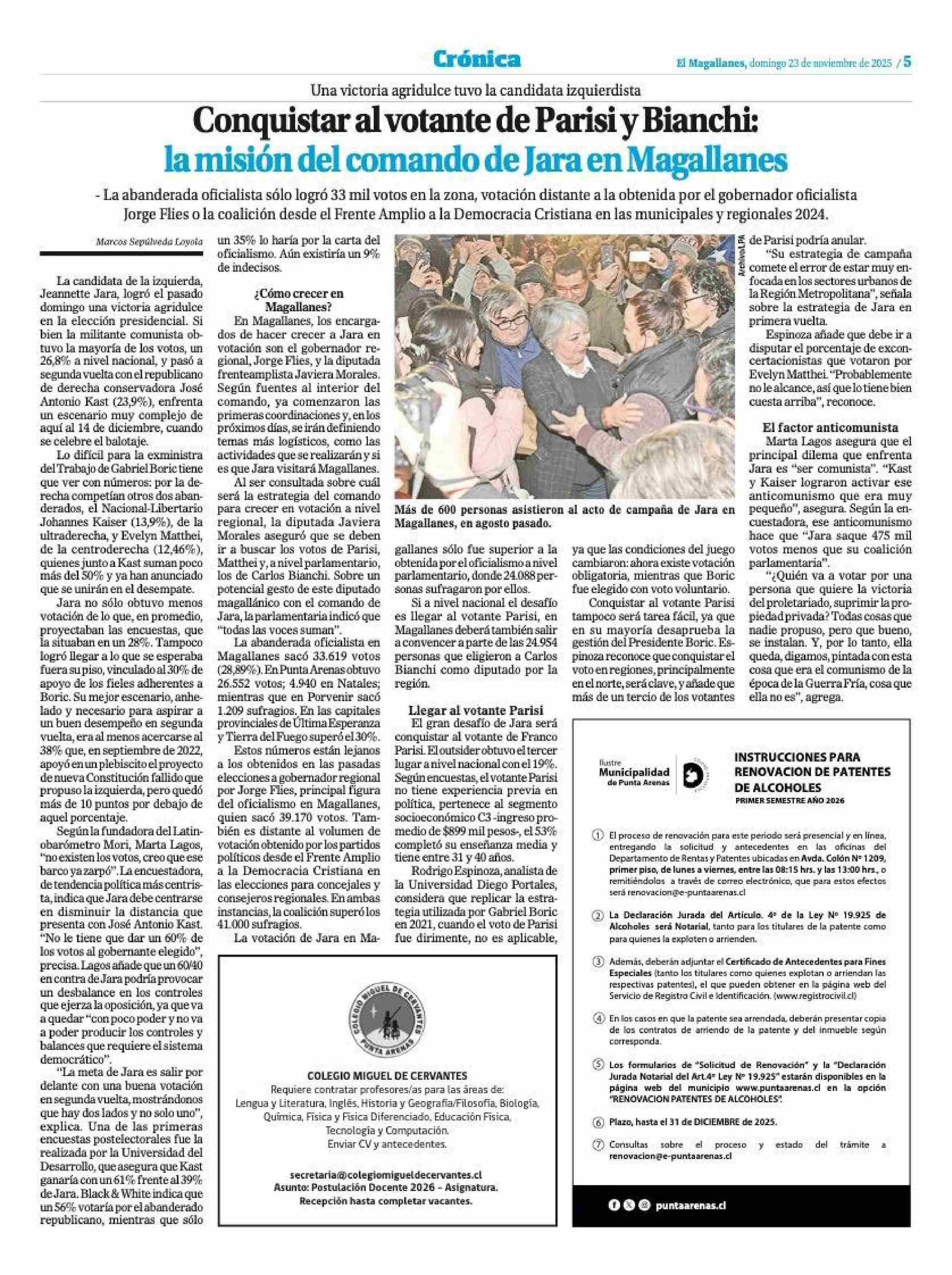 Título: Conquistar al votante de Parisi y Bianchi la misión del comando de Jara en Magallanes