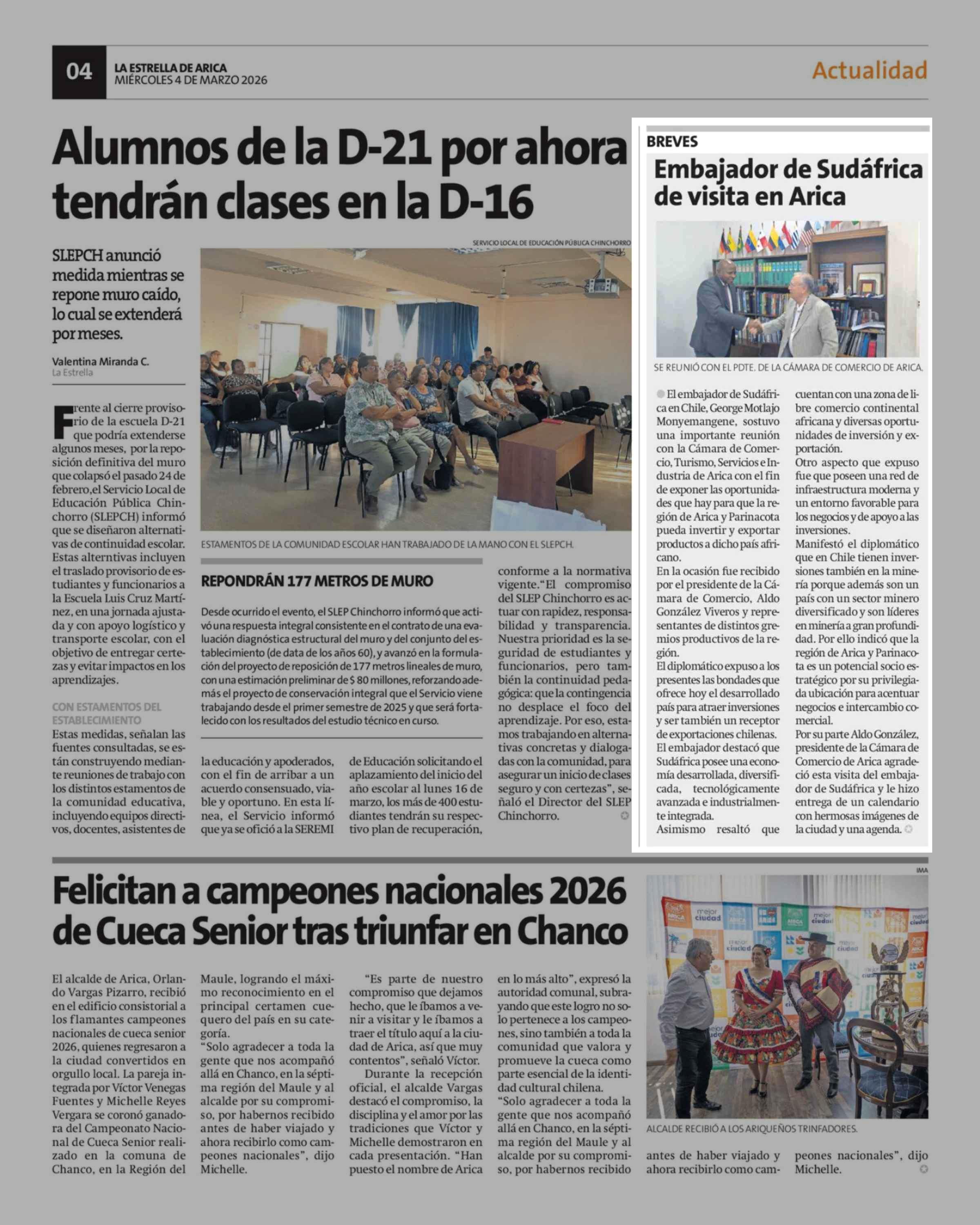 Fecha: 04-03-2026 Sector: Noticia general Región: Región de Arica y Parinacota