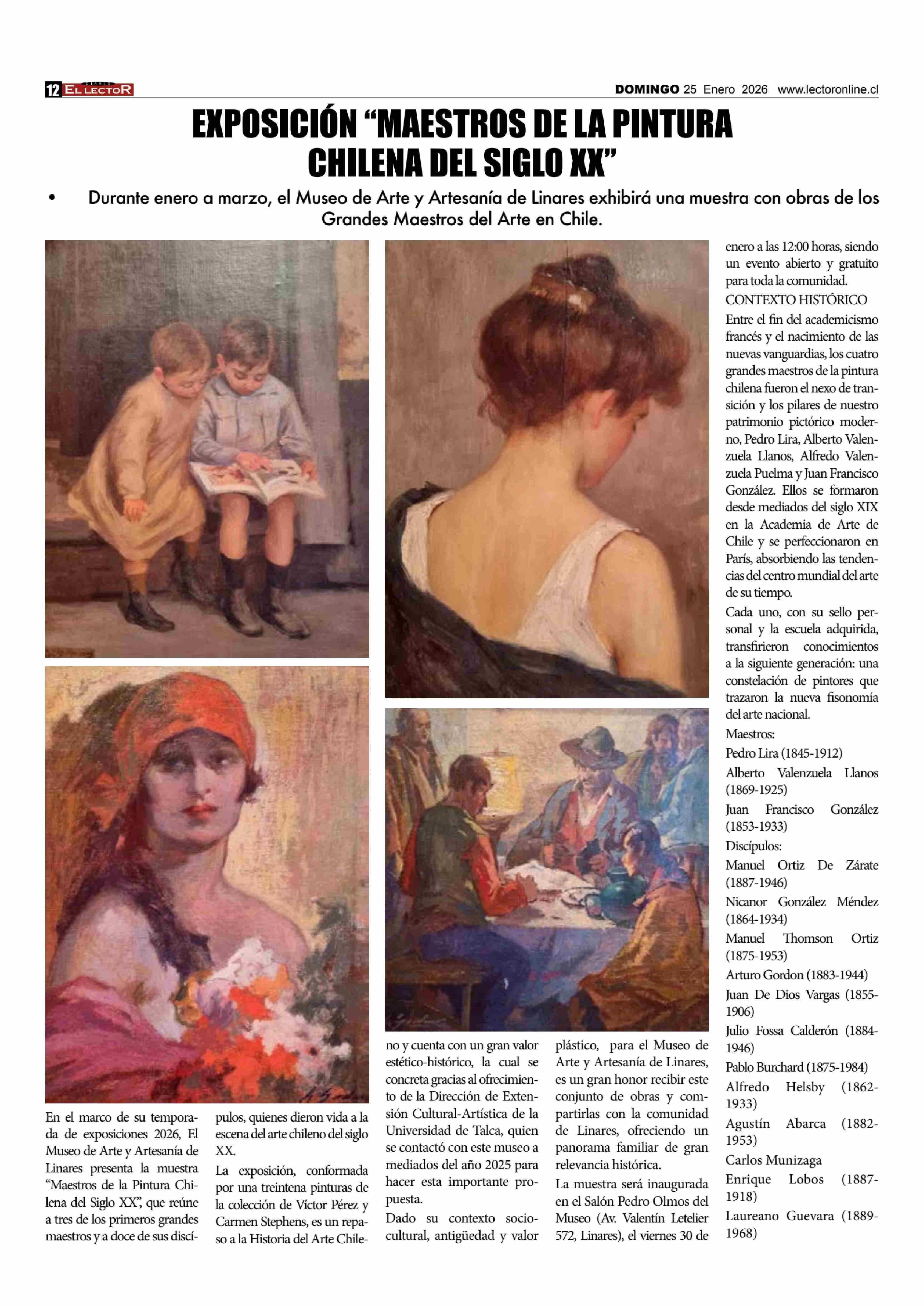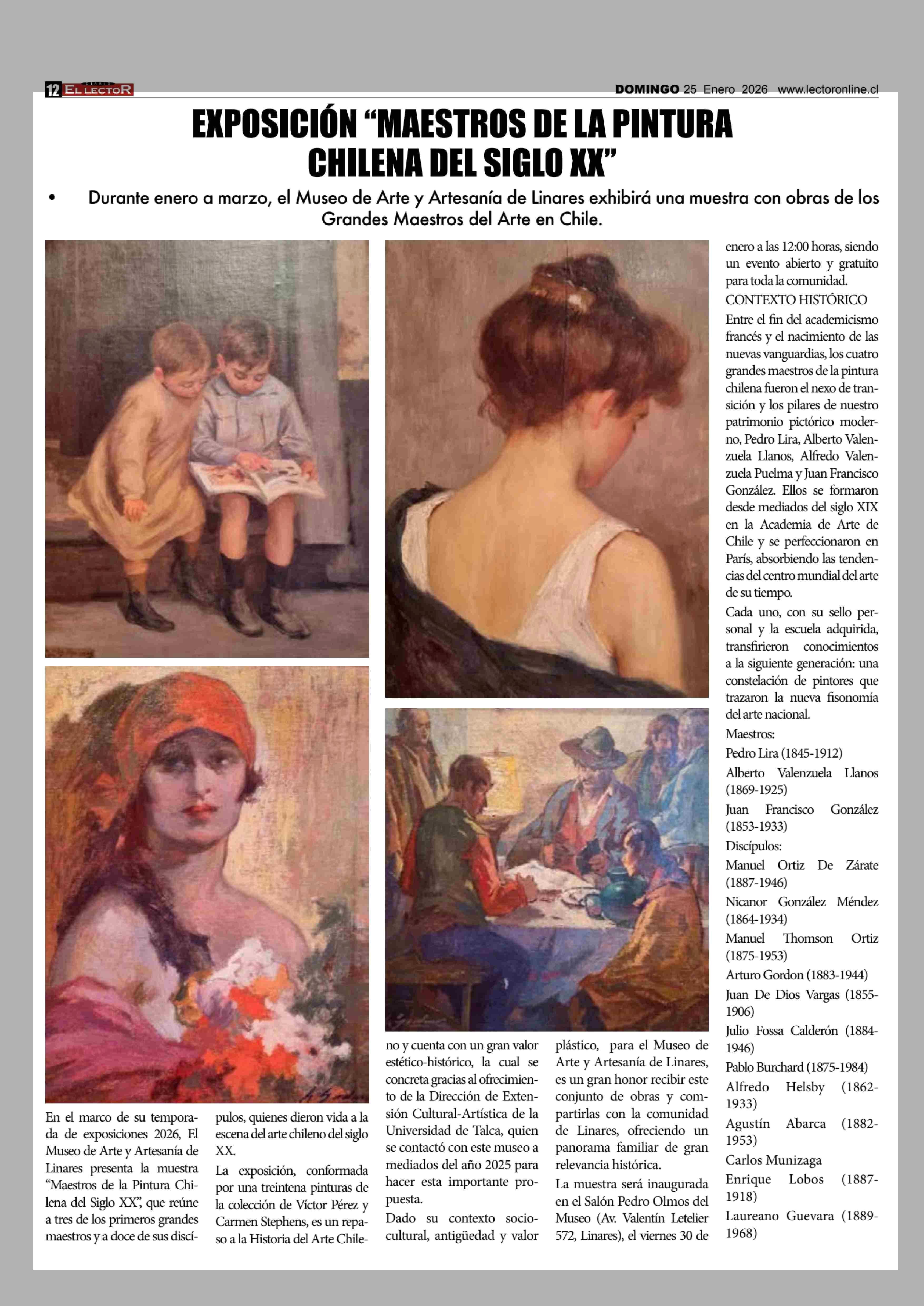 EXPOSICIÓN "MAESTROS DE LA PINTURA CHILENA DEL SIGLO XX" 25-01-2026 El Lector |