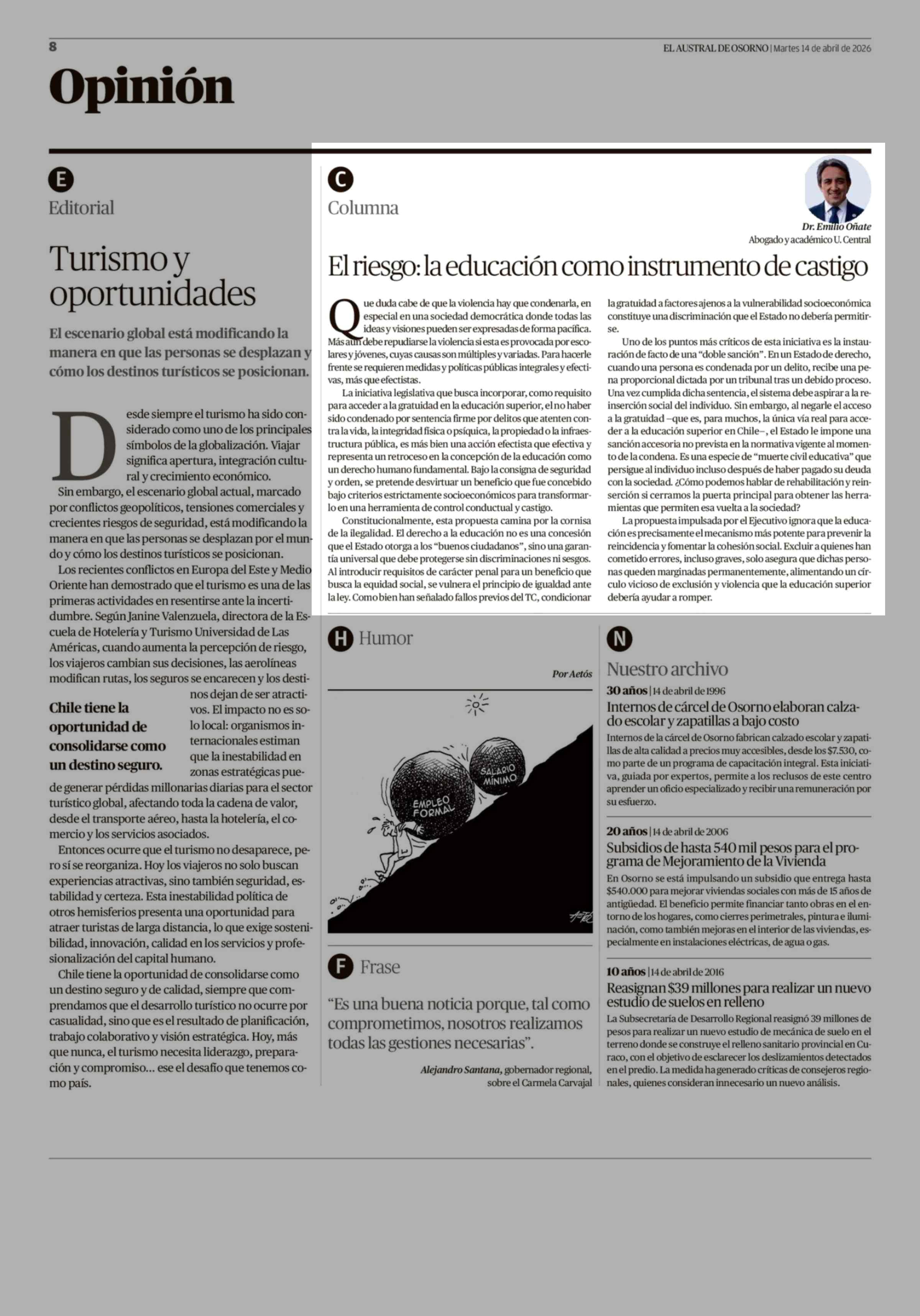 Fecha: 14-04-2026 Sector: Columnas de Opinión Región: Región de Los Lagos