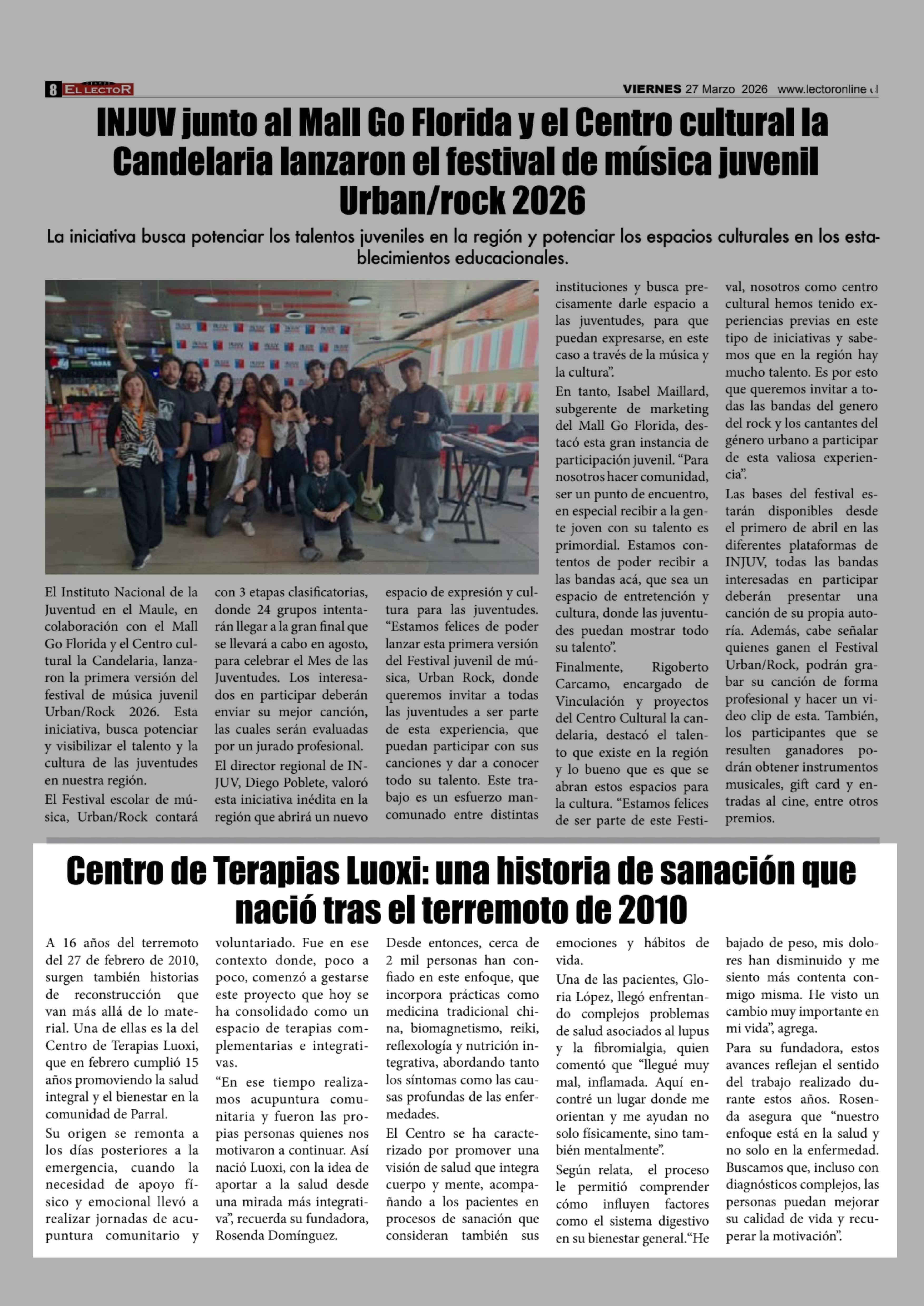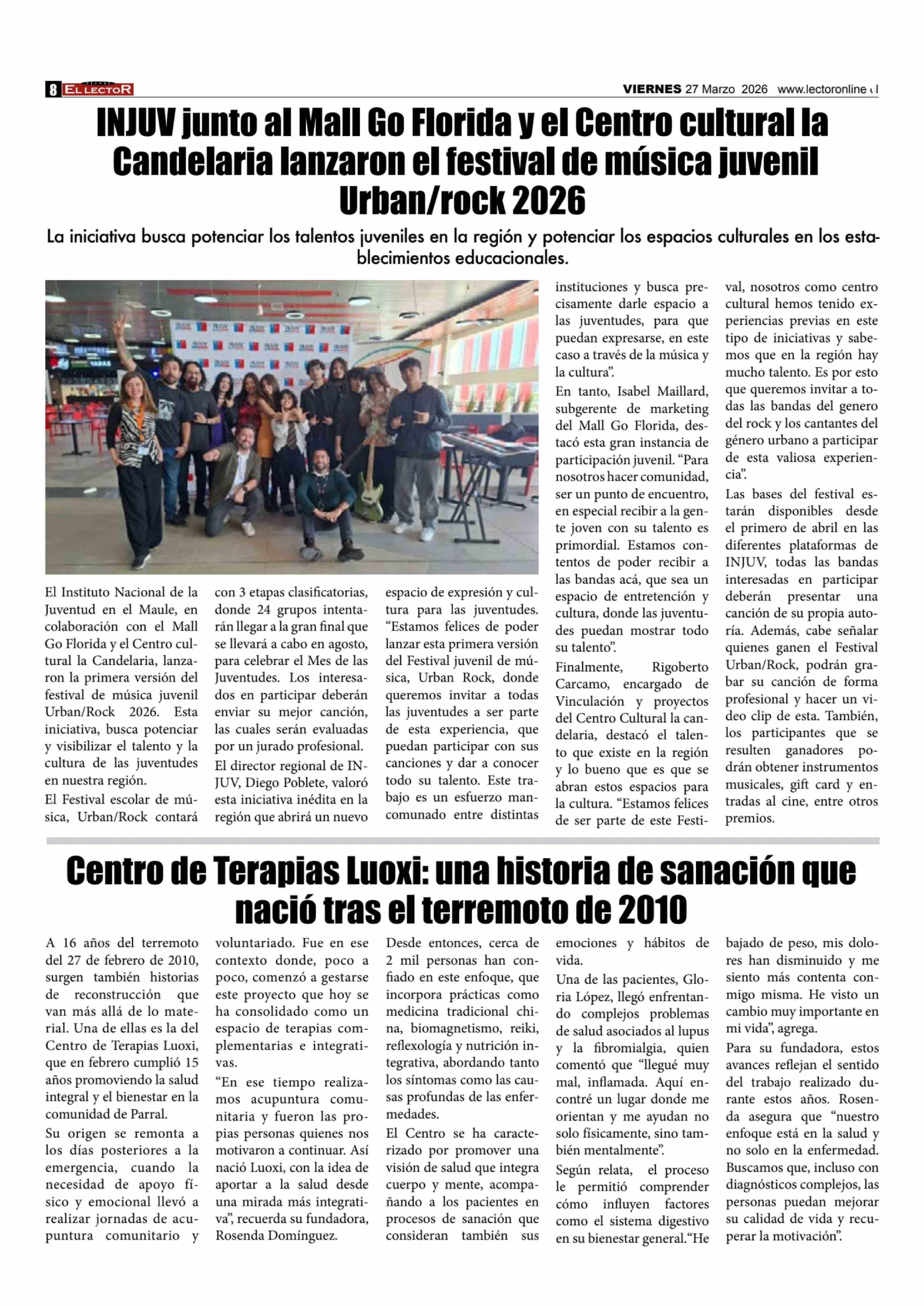 Fecha: 27-03-2026 Sector: Noticia general Región: Región del Maule