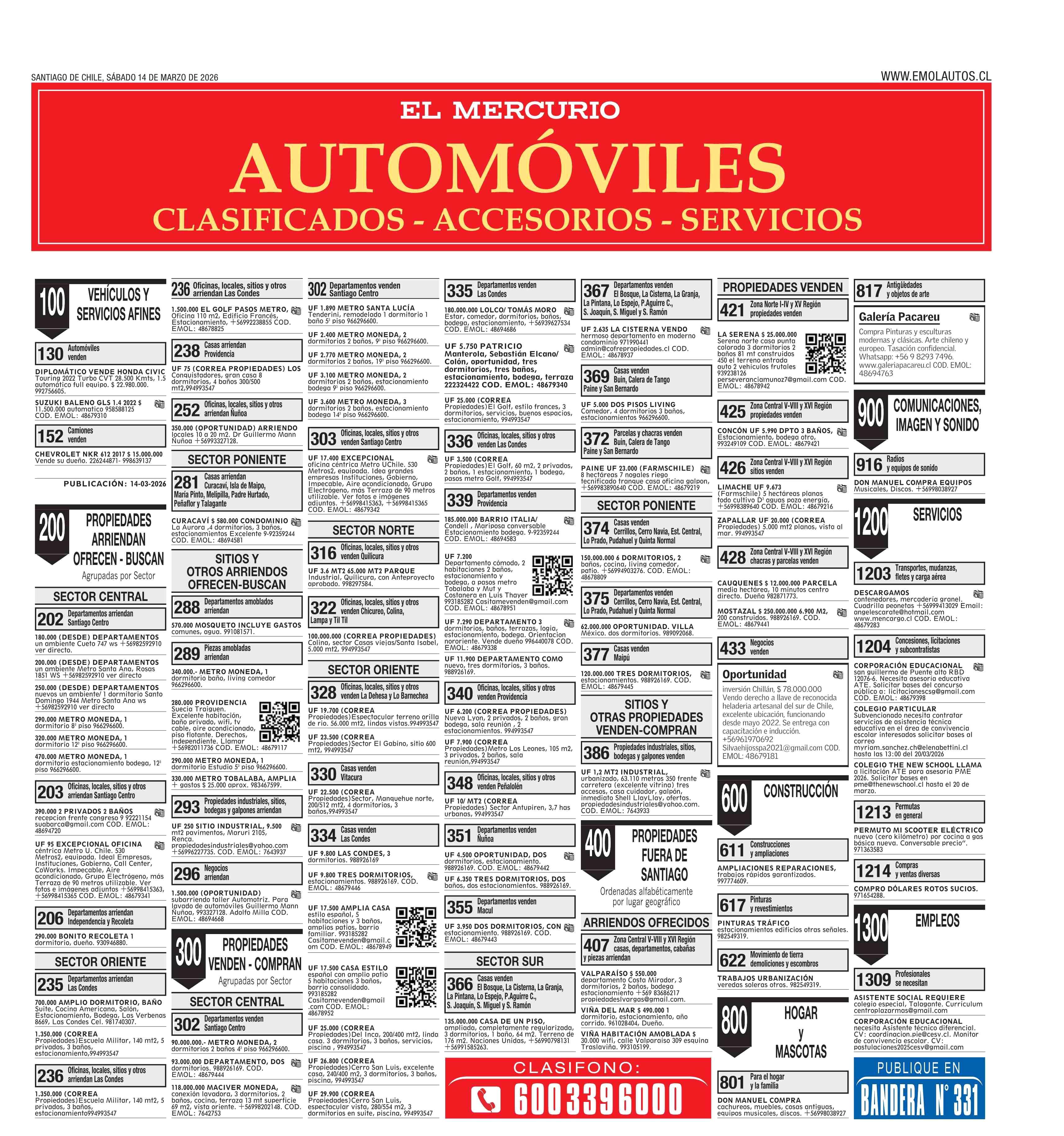 PORTADA EL MERCURIO (AUTOMÓVILES) CHILE 14-03-2026 El Mercurio |