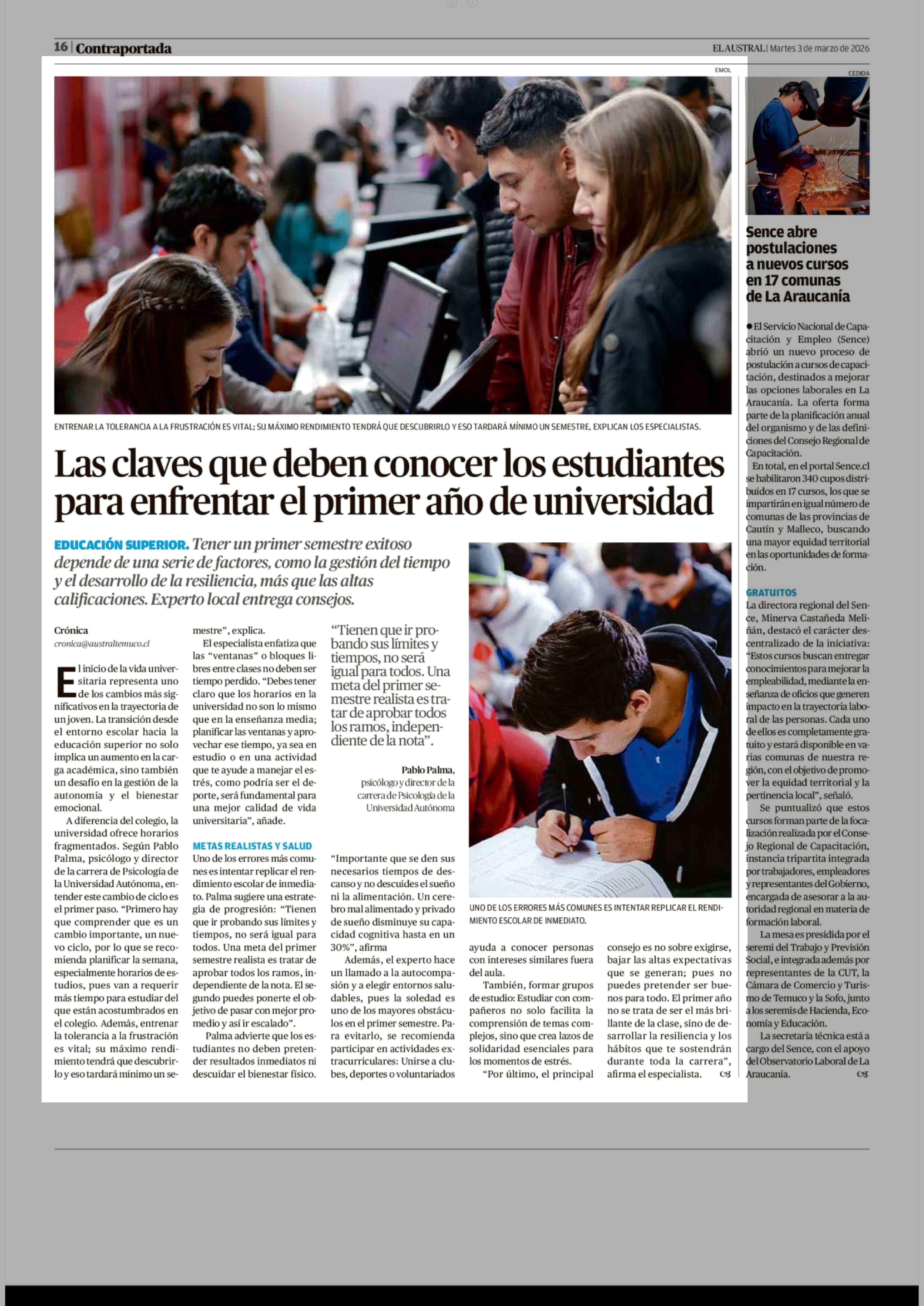Fuente: El Austral de la Araucanía (El Austral de la Araucanía) Página(s): 16
