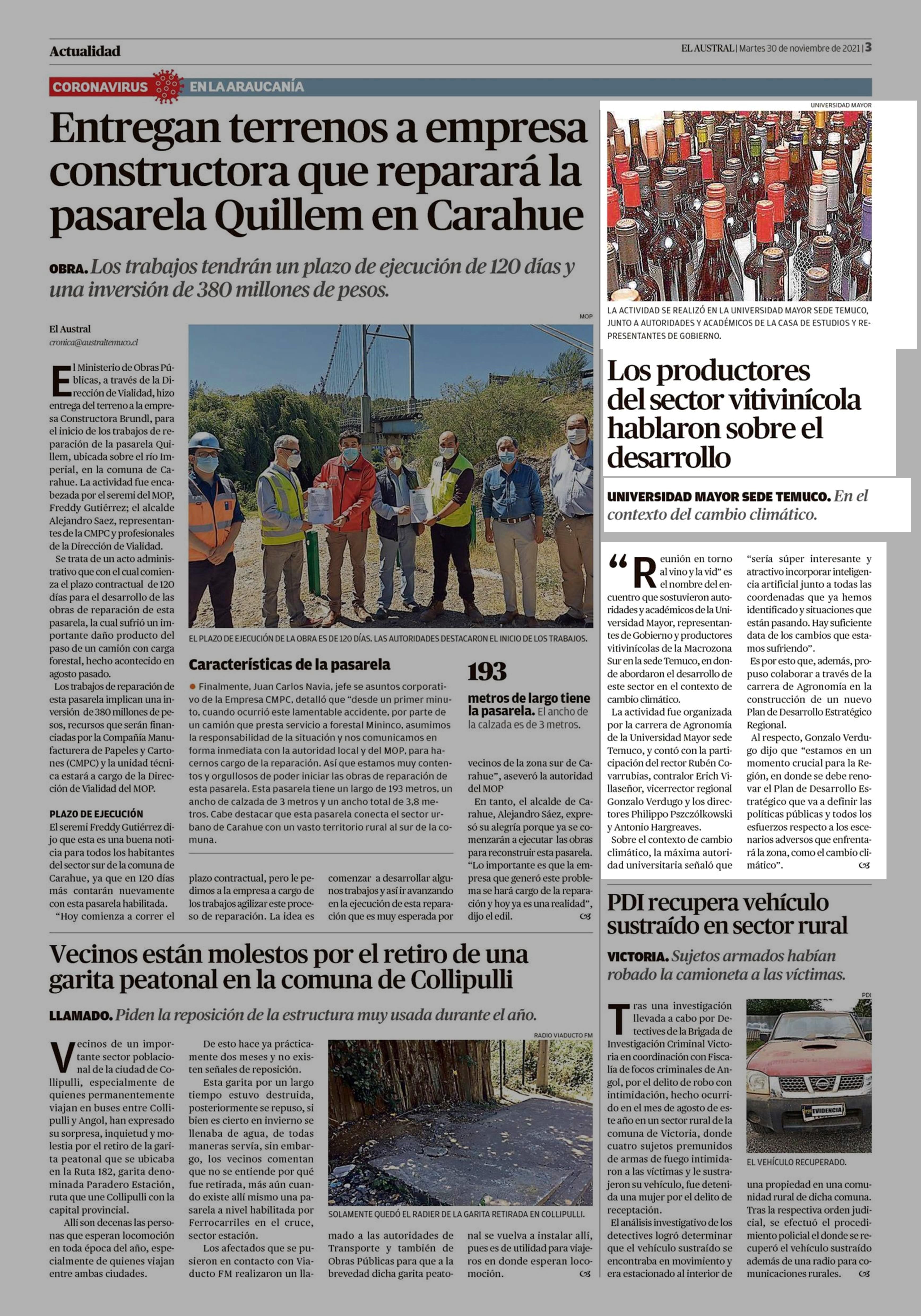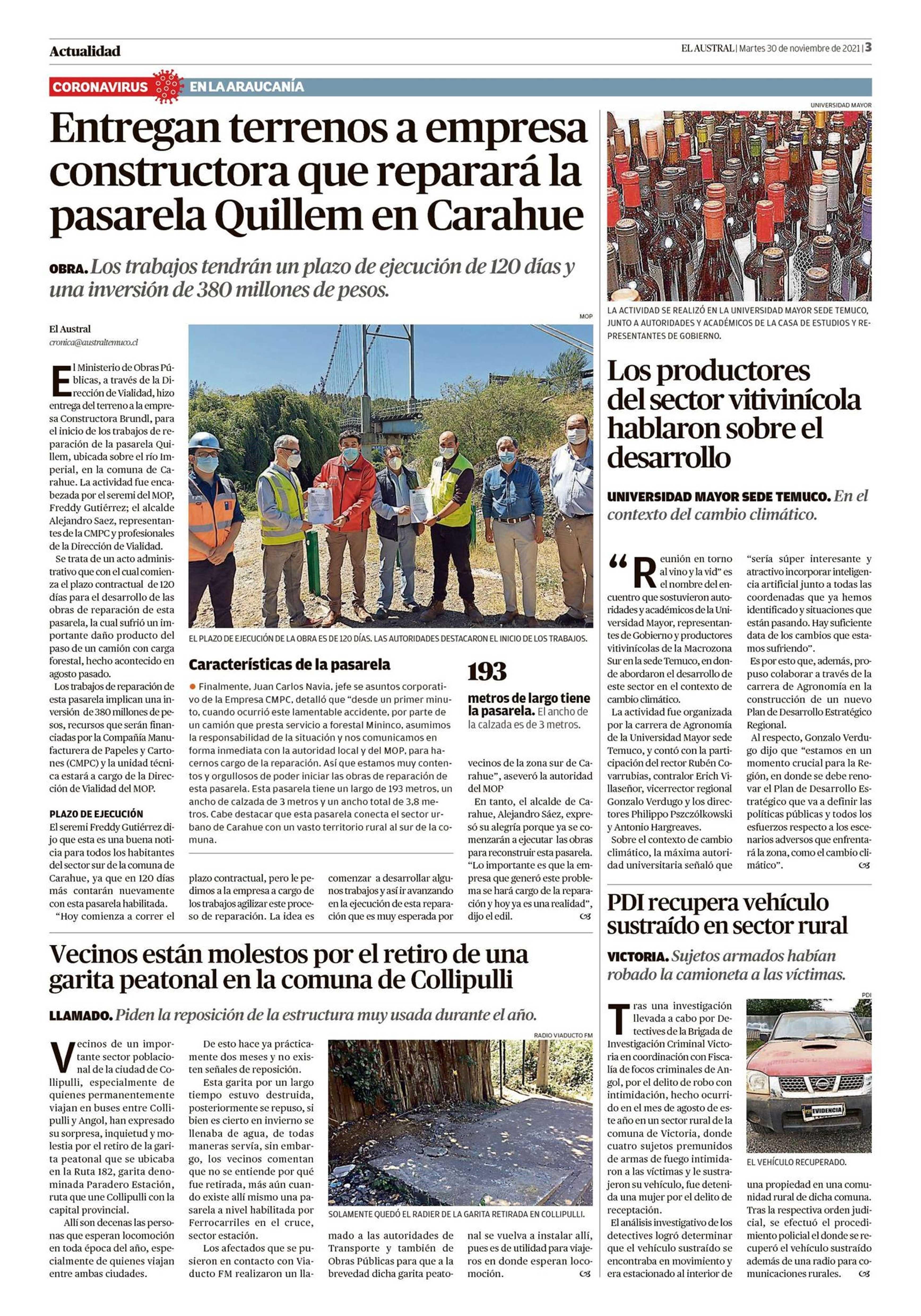 | Fecha: | 30-11-2021 | Sector: | Actualidad | Región: | Región de la Araucanía |