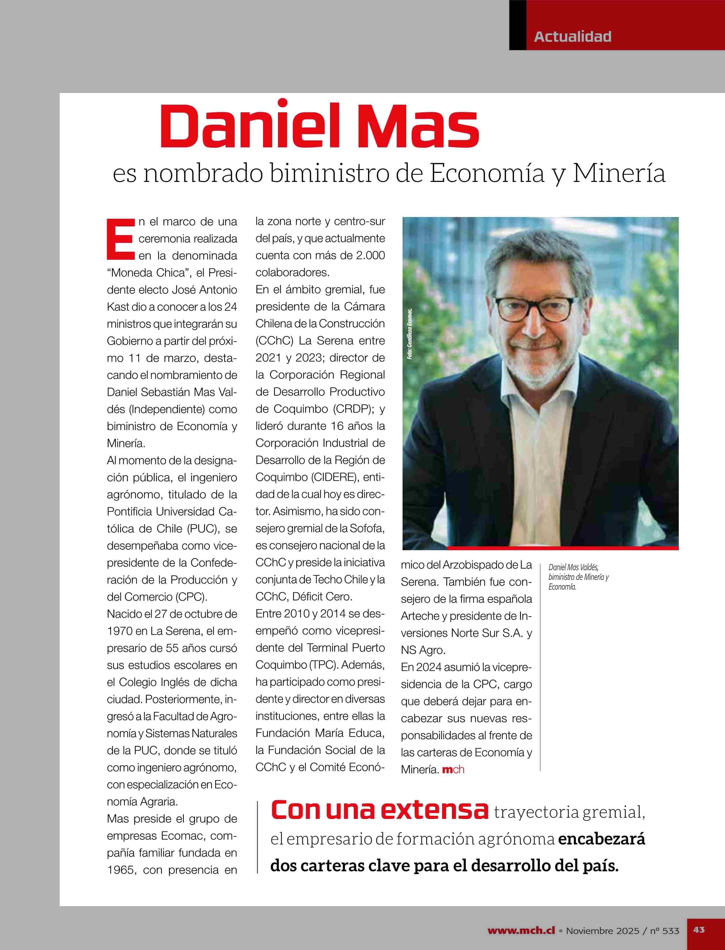 Daniel Mas es nombrado biministro de Economía Minería 23-01-2026 Revista Minería Chilena |