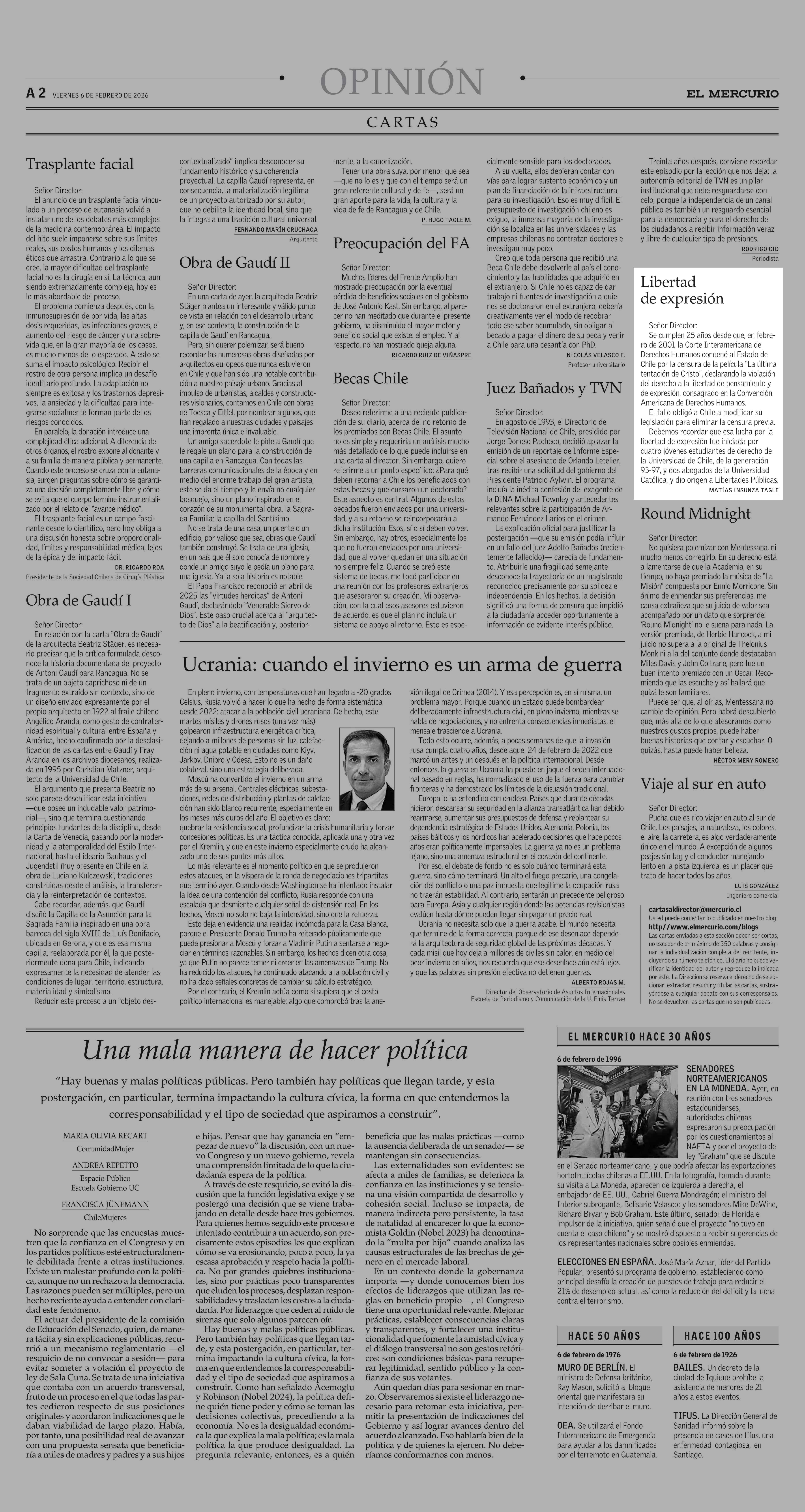 Cartas: Libertad de expresión 06-02-2026 El Mercurio |
