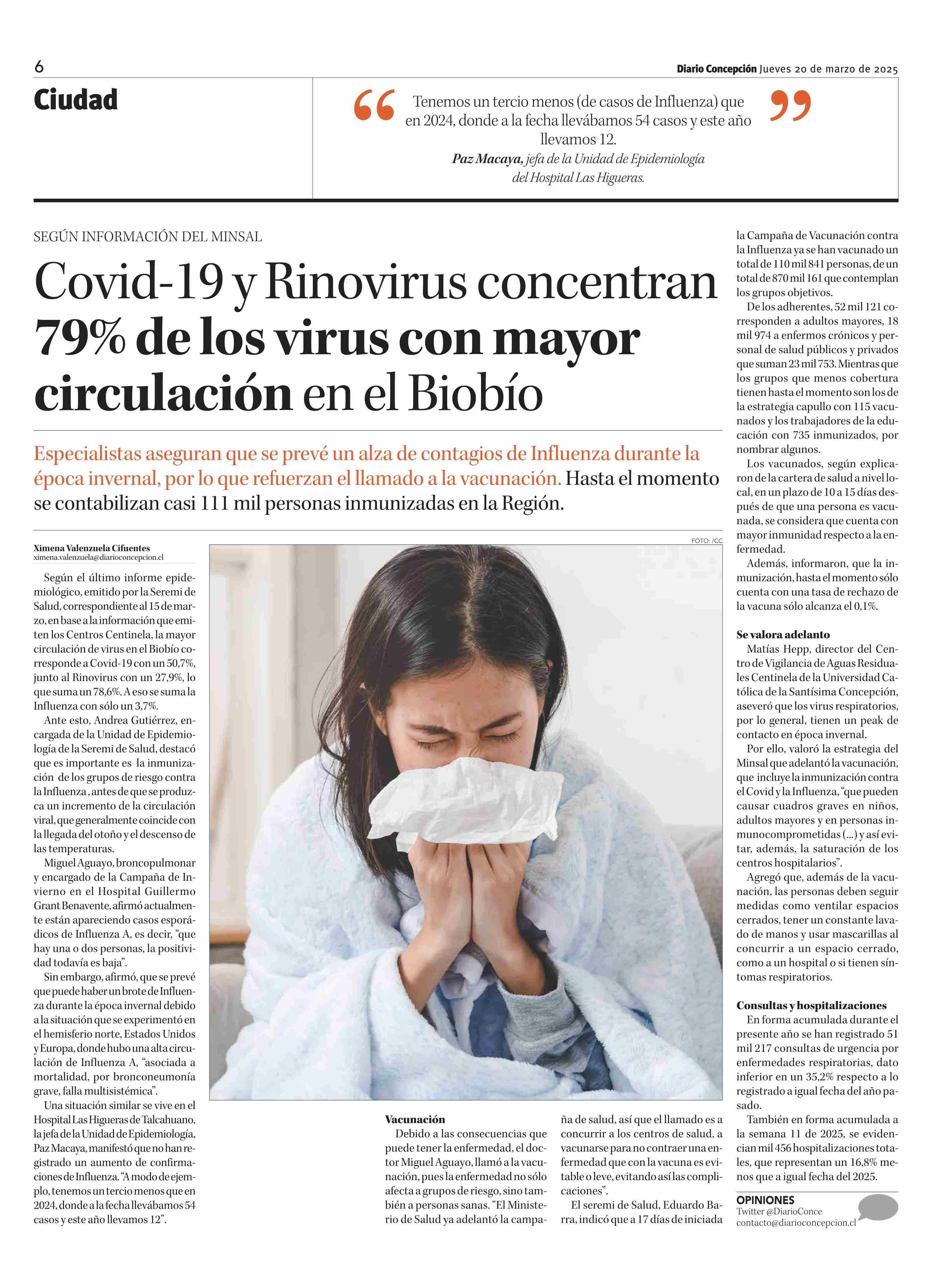 Título: Covid-19 y Rinovirus concentran 79% de los virus con mayor circulación en el Biobío