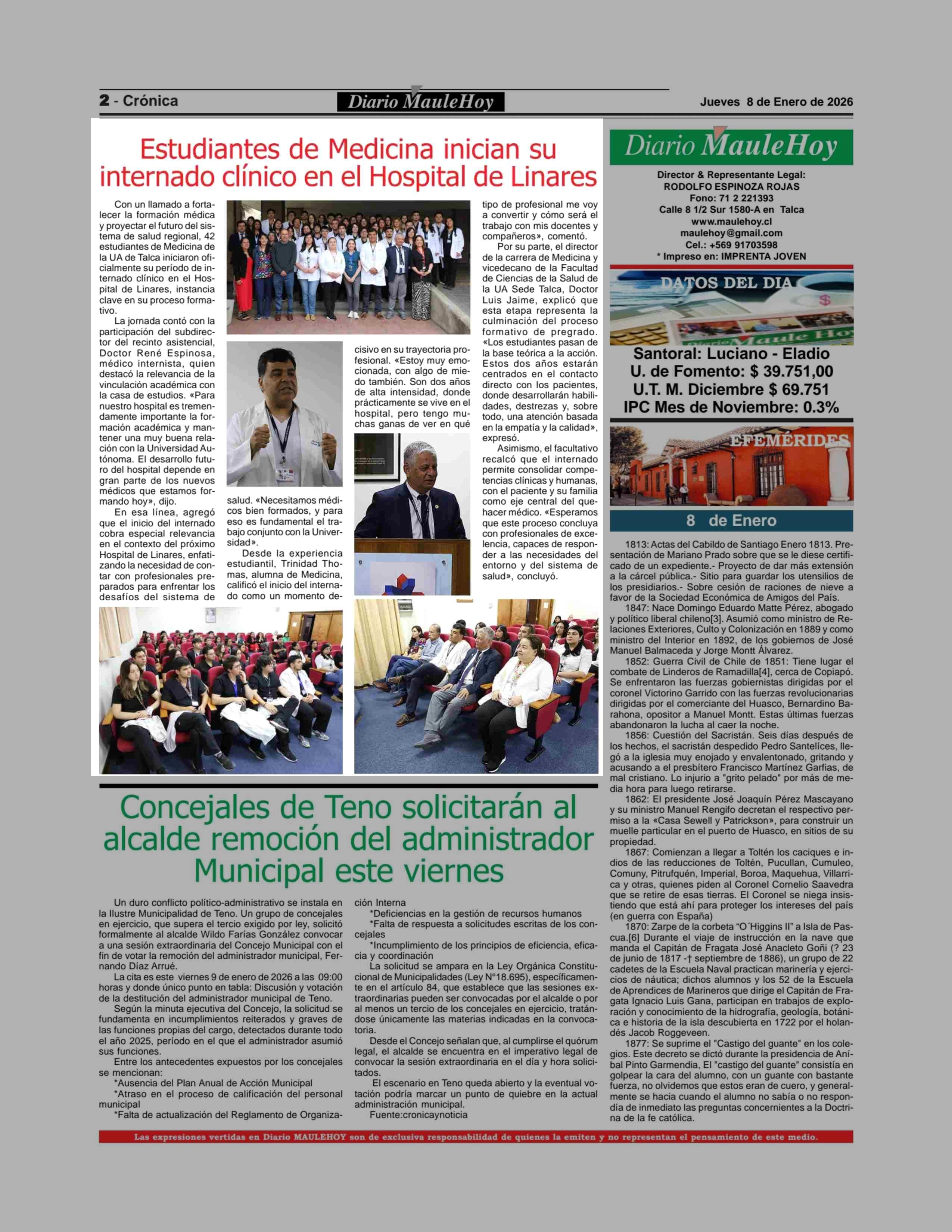 | Fuente: | Maule Hoy (Maule Hoy) | Página(s): | 2 |