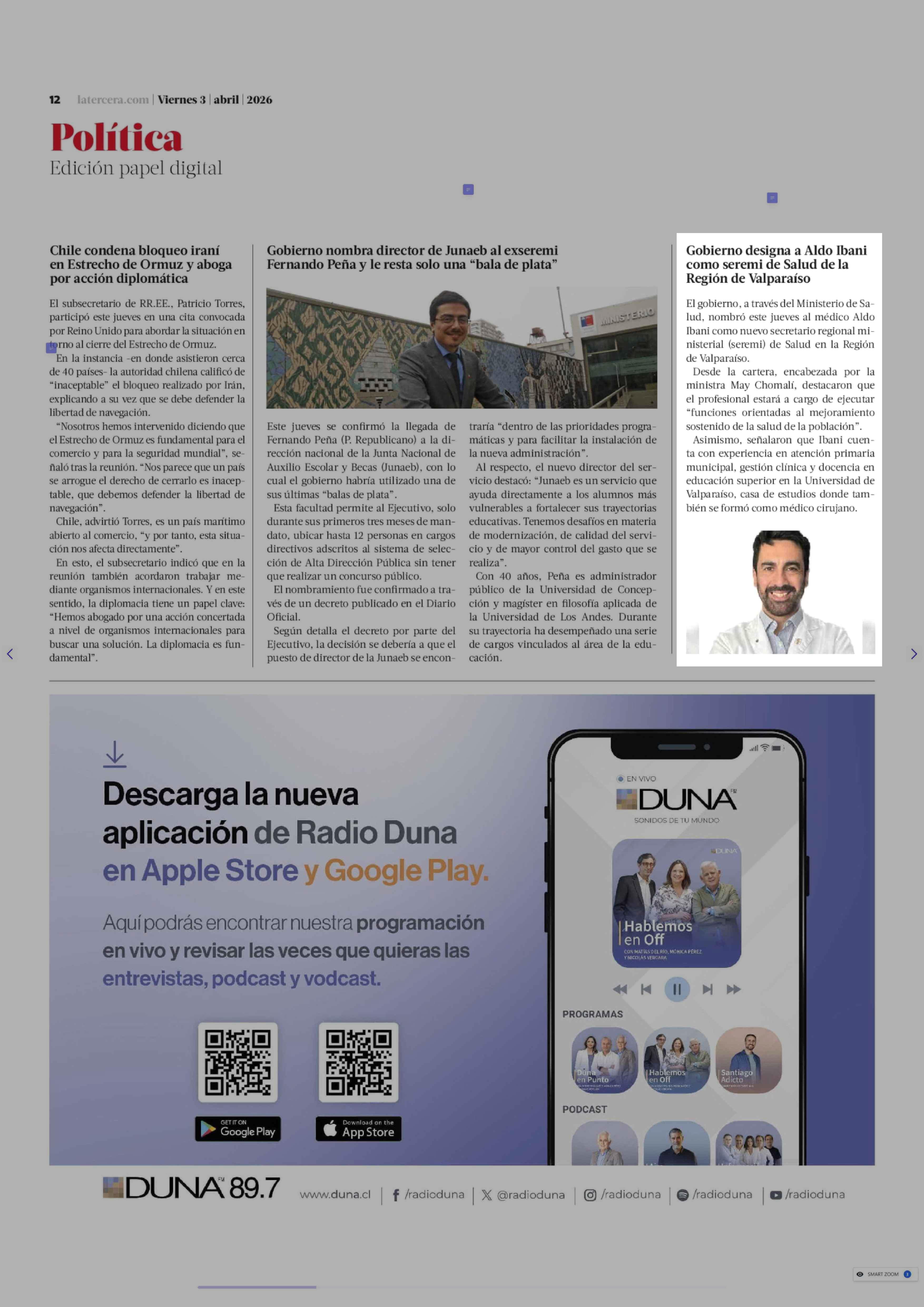 Fuente: La Tercera (La Tercera) Página(s): 12