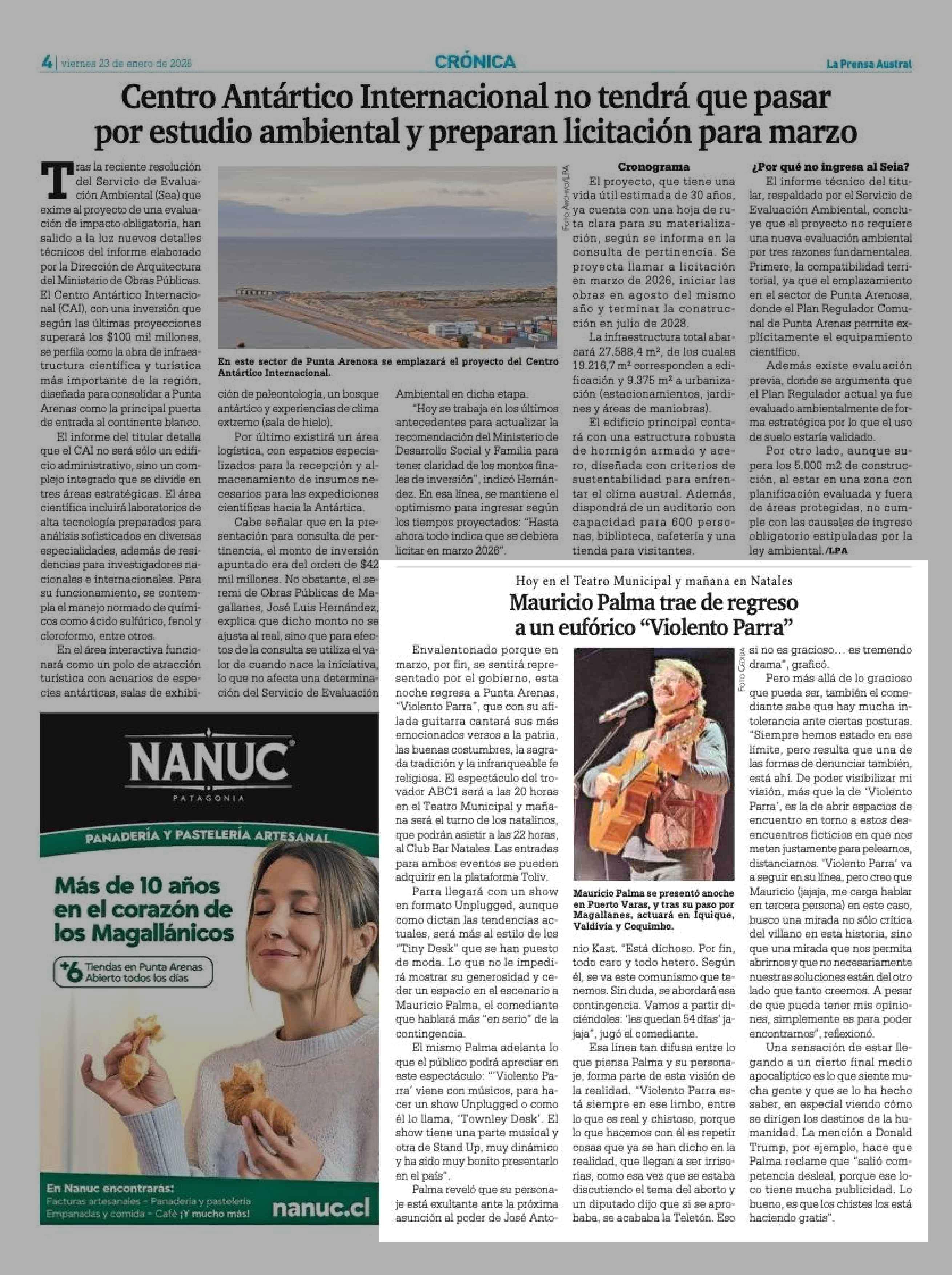 Fecha: 23-01-2026 Sector: Noticia general Región: Región de Magallanes y de la Antártica Chilena