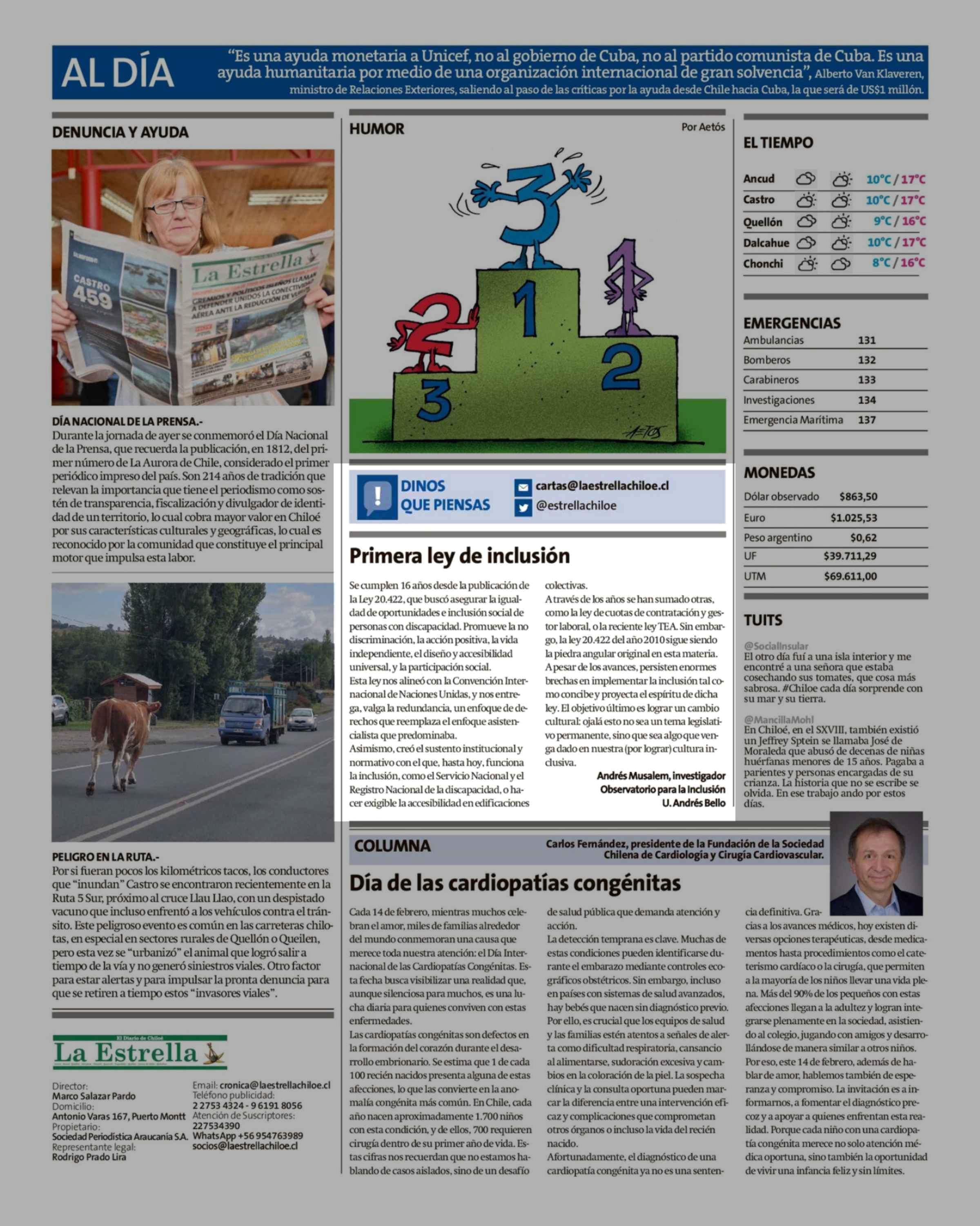 Cartas: Primera ley de inclusión 14-02-2026 La Estrella de Chiloé |