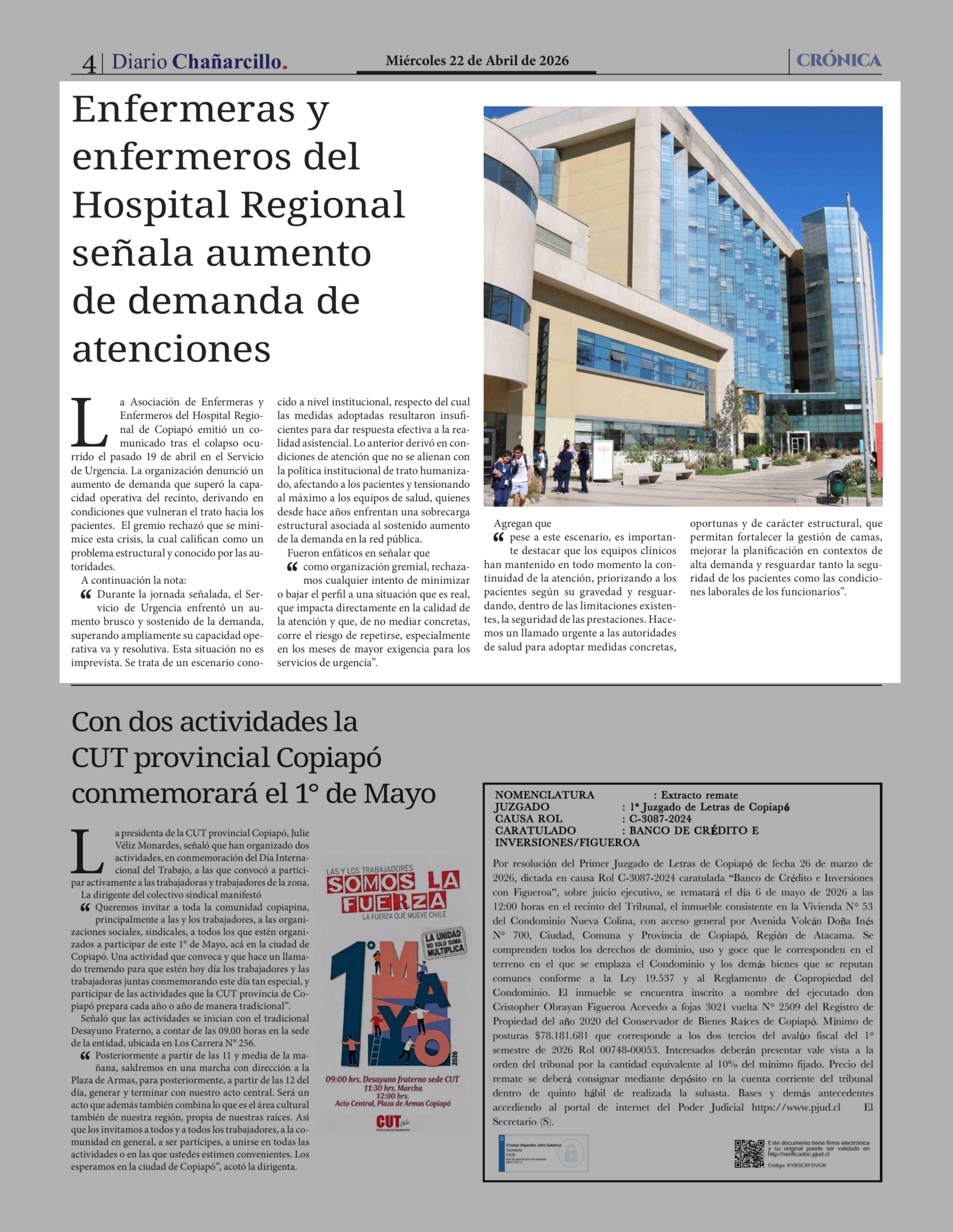 Fuente: Diario Chañarcillo (Diario Chanarcillo) Página(s): 4