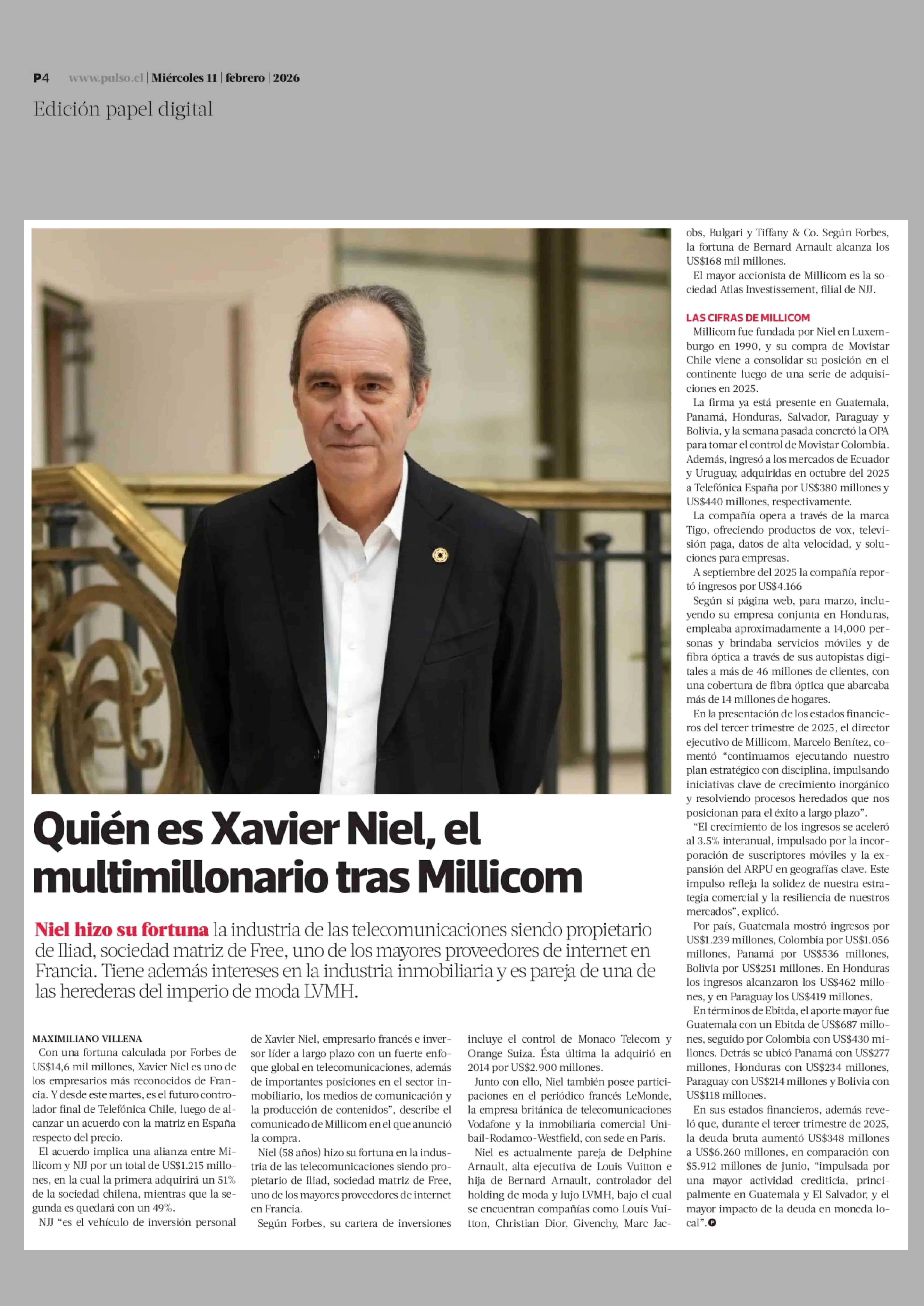 Quién es Xavier Niel, el multimillonario tras Millicom 11-02-2026 La Tercera |