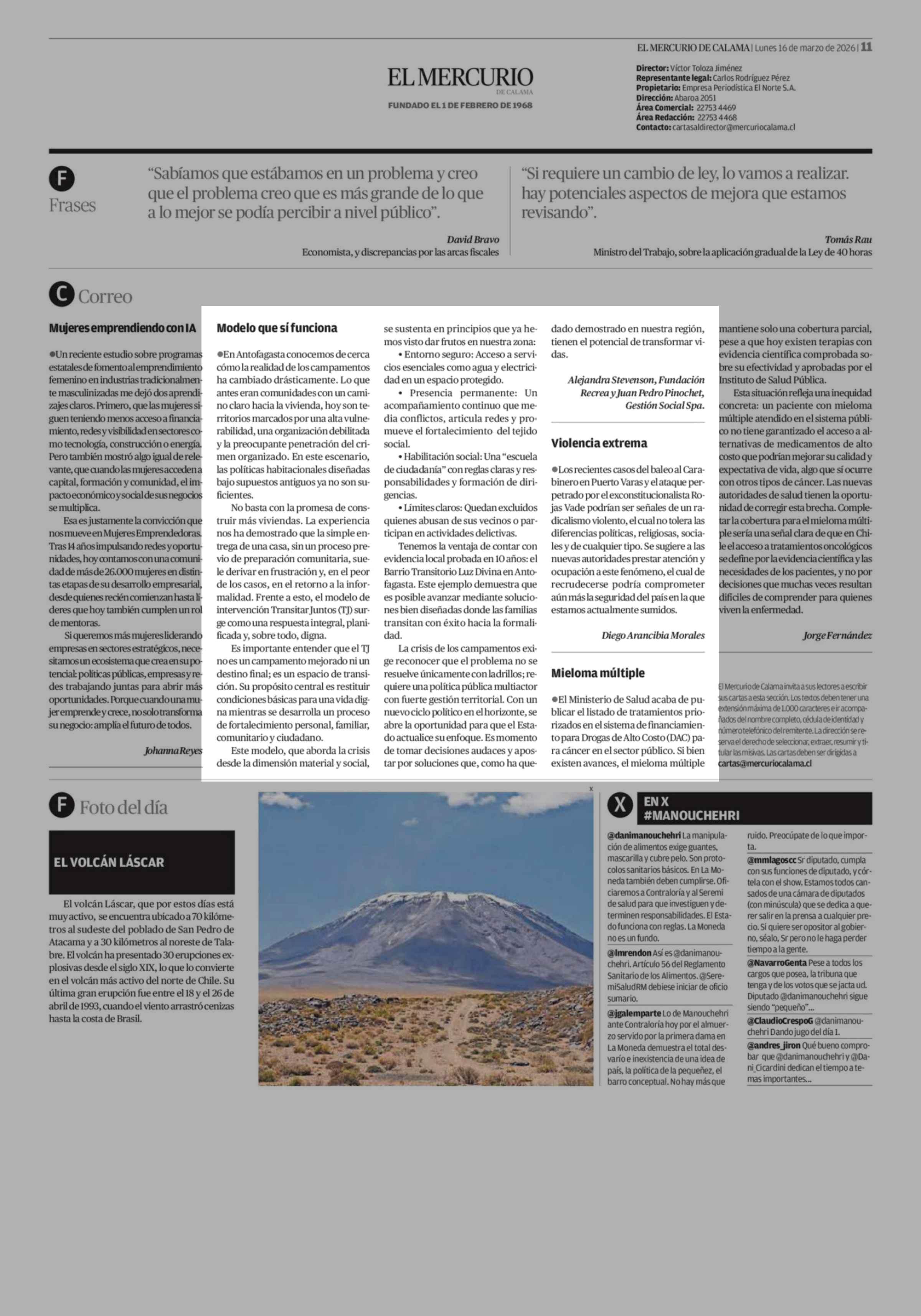 Cartas: Modelo que si funciona 16-03-2026 El Mercurio de Calama |
