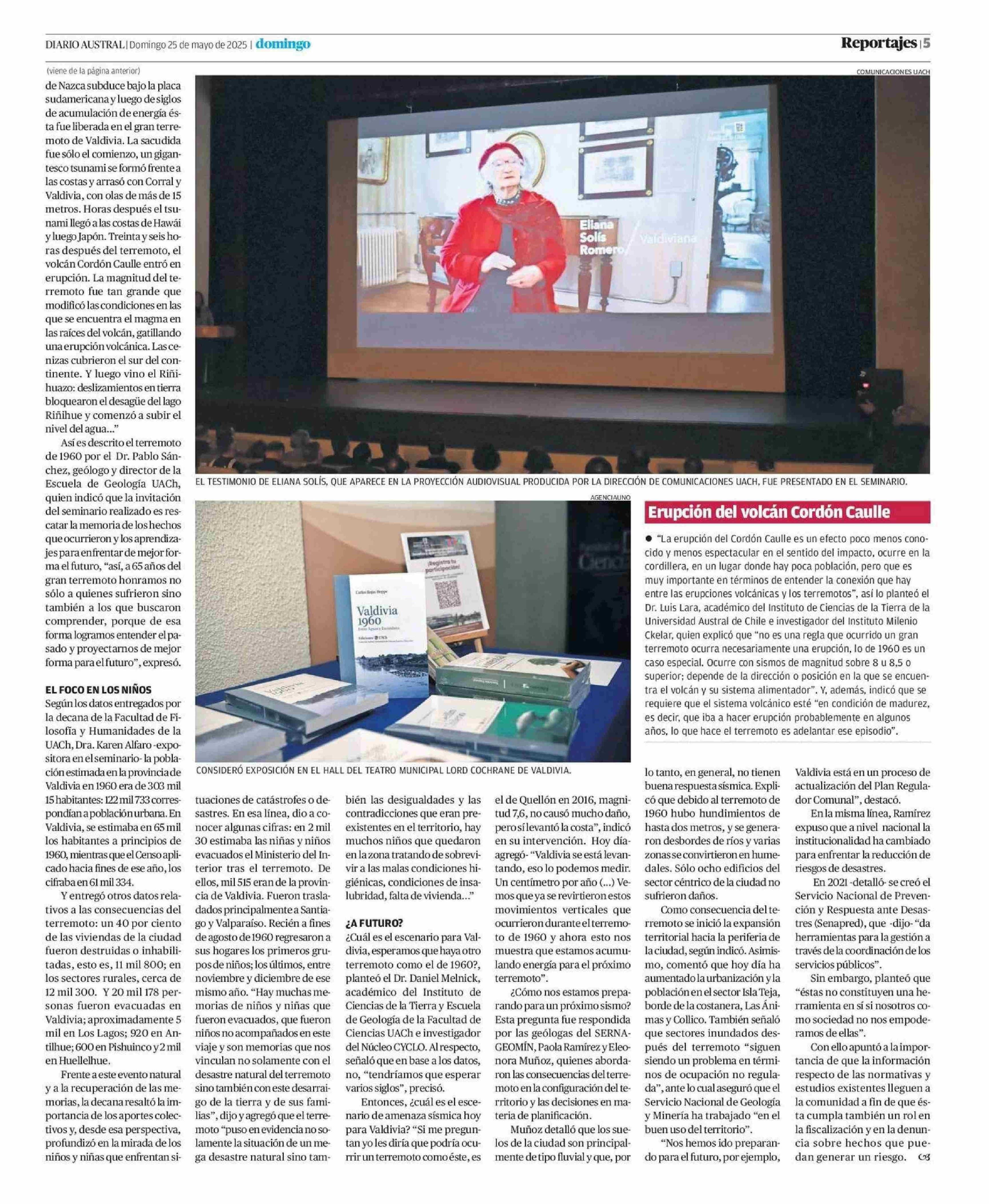 Terremoto de 1960: la memoria, desafios v los aprendizajes 25-05-2025 Diario Austral Región de Los Ríos |
