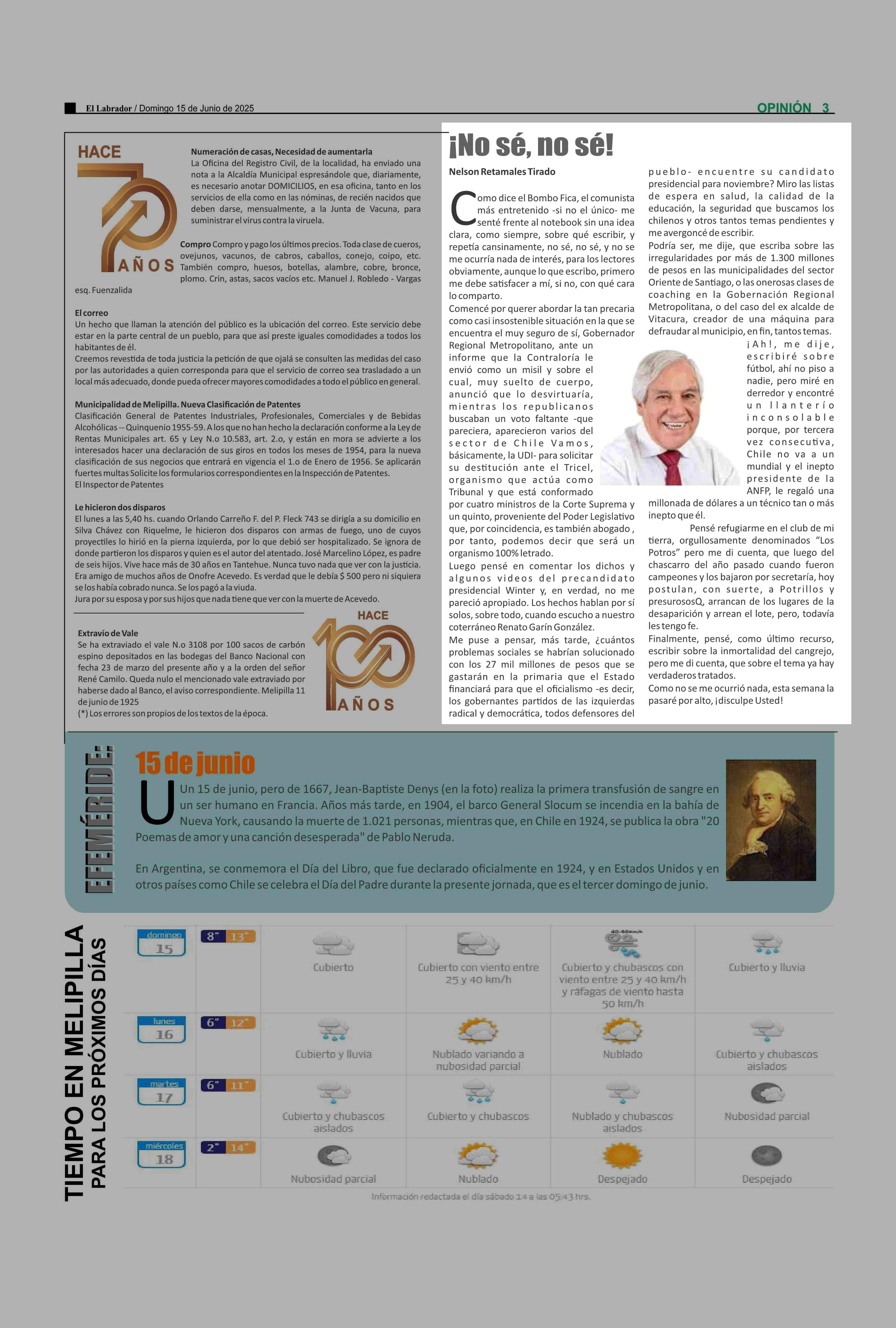 COLUMNAS DE OPINIÓN: ¡No sé, no sé! 15-06-2025 El Labrador |