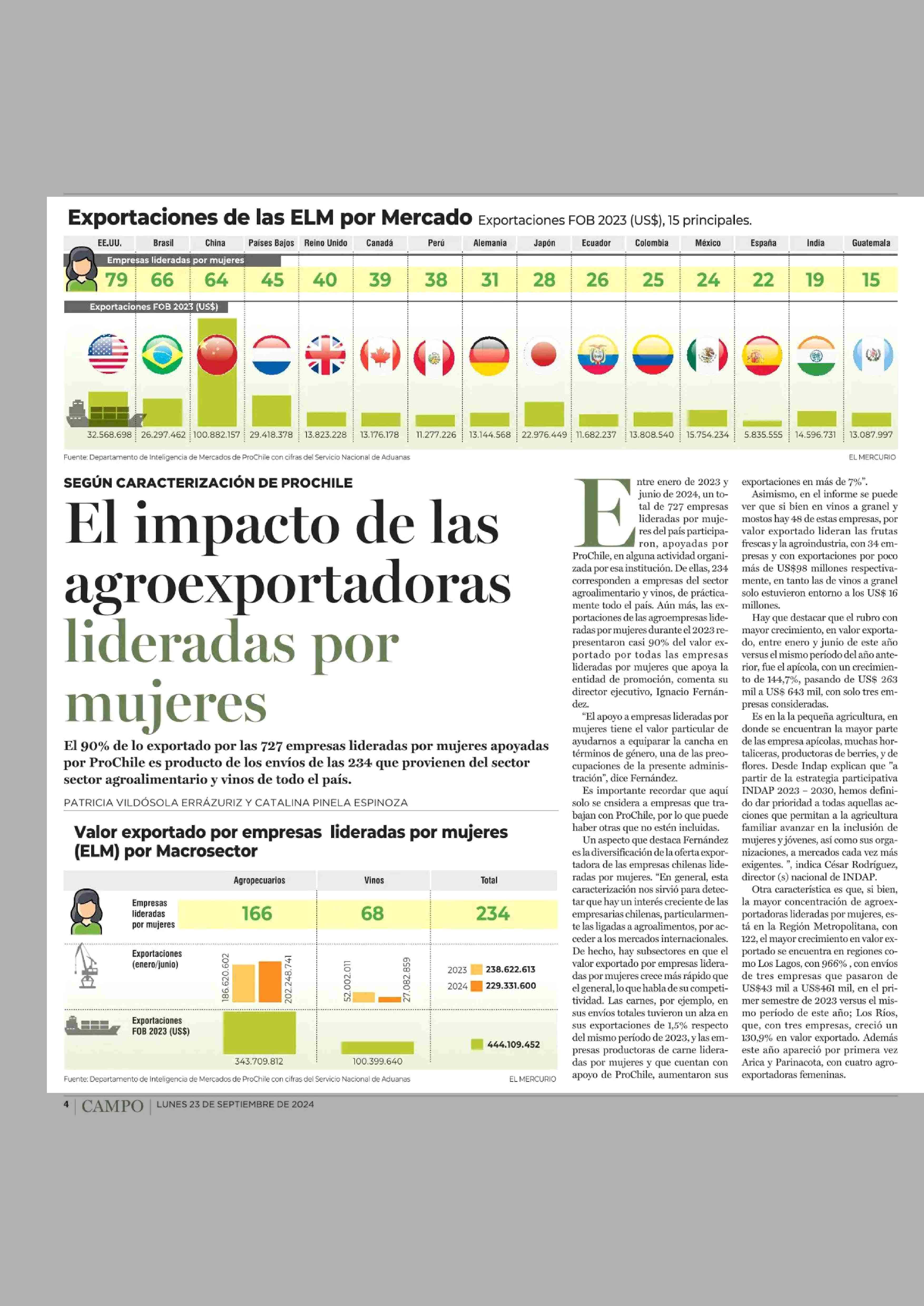 El impacto de las agroexportadoras lideradas por Mujeres 23-09-2024 El Mercurio |