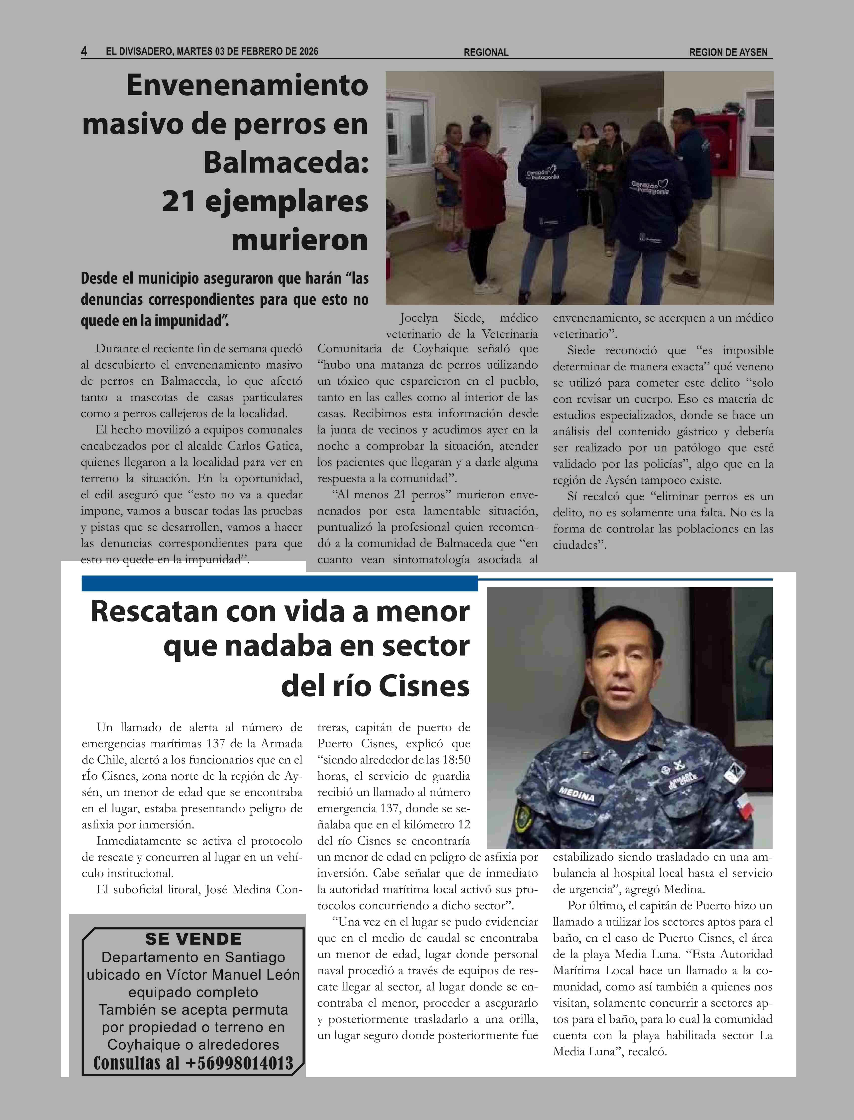 Fecha: 03-02-2026 Sector: Noticia general Región: Región Aysén del General Carlos Ibáñez del Campo