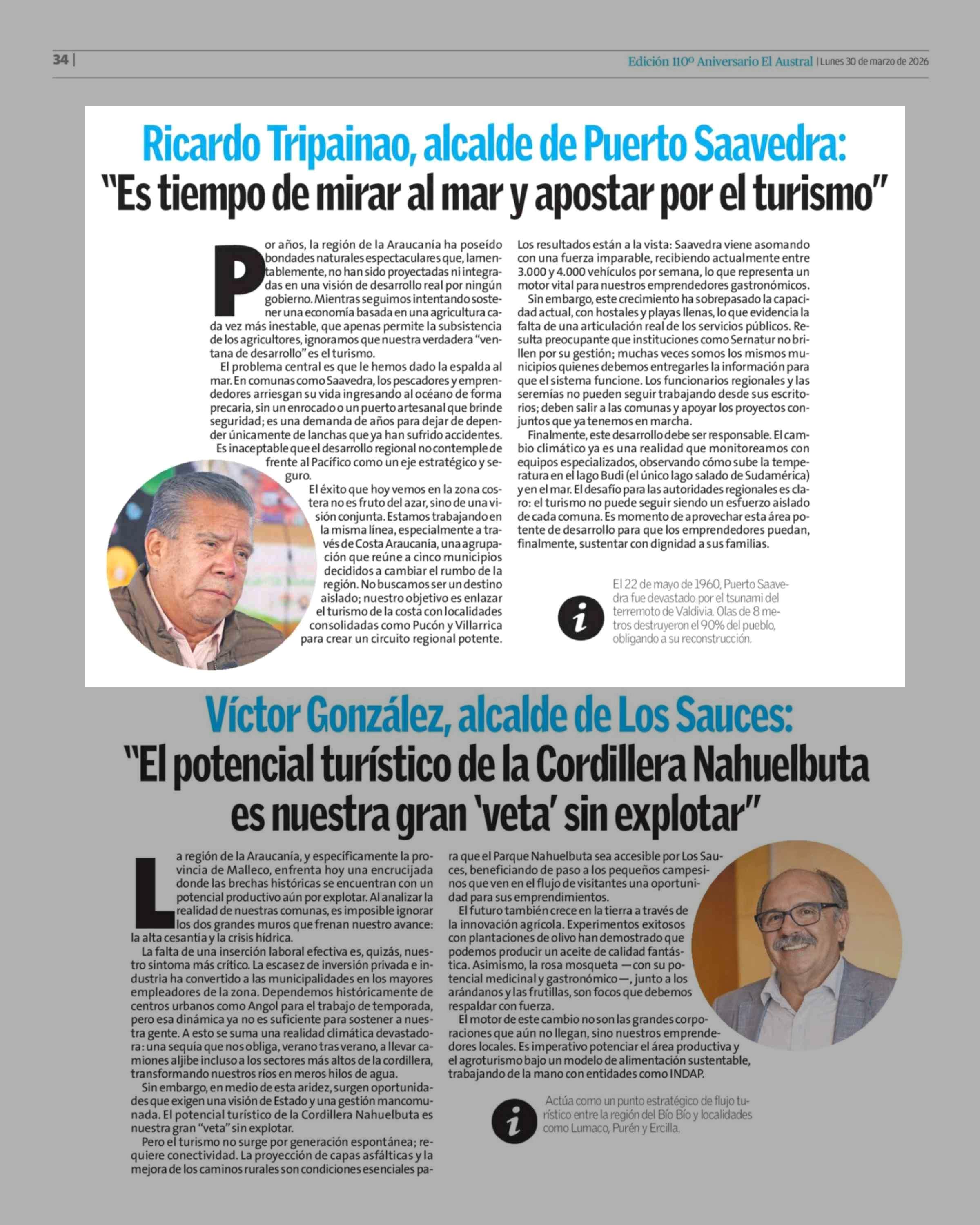 Título: Columnas de Opinión: Ricardo Tripainao, alcalde de Puerto Saavedra: "Es tiempo de mirar al mar y apostar por el turismo"