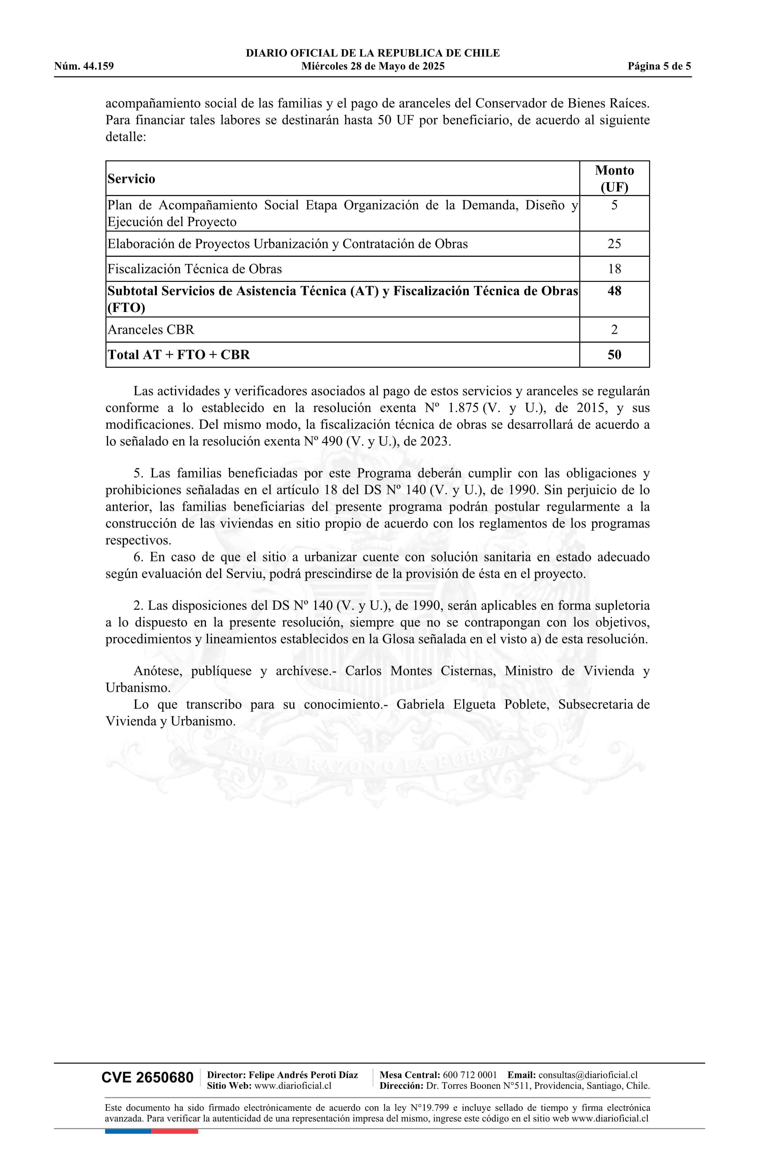 | Título: | Resolución exenta número 704, de 2025.- Establece requisitos y condiciones operativas para la aplicación práctica del decreto Nº 140, de 1990, conforme a lo dispuesto en la glosa 03 de Vivienda, asociada al subtítulo 33, ítem 01, letra v), de la Ley de Presupuestos del Sector Público del año 2025 |