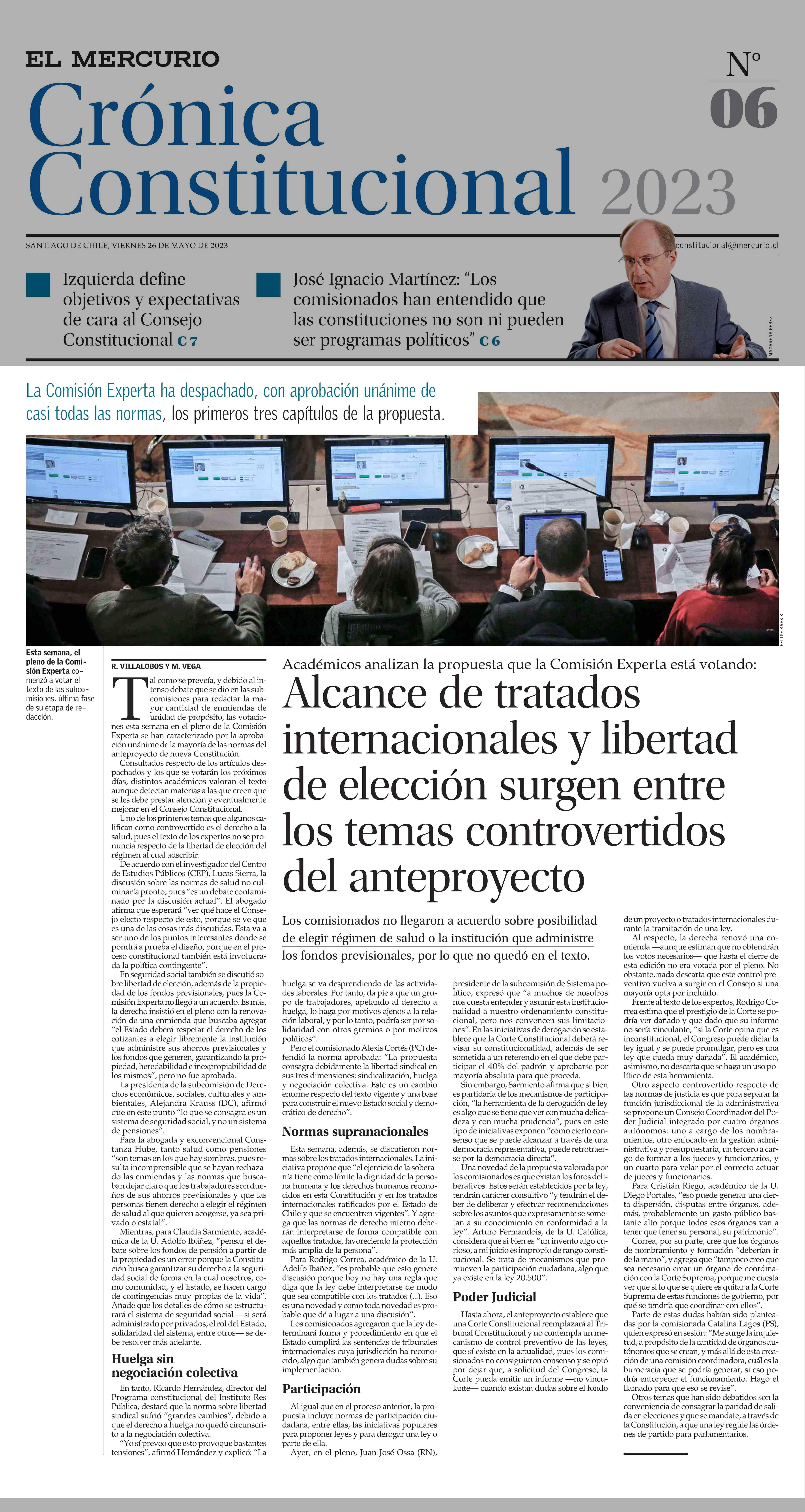 Alcance de tratados internacionales y libertad de elección surgen entre los temas controvertidos del anteproyecto 26-05-2023 El Mercurio |
