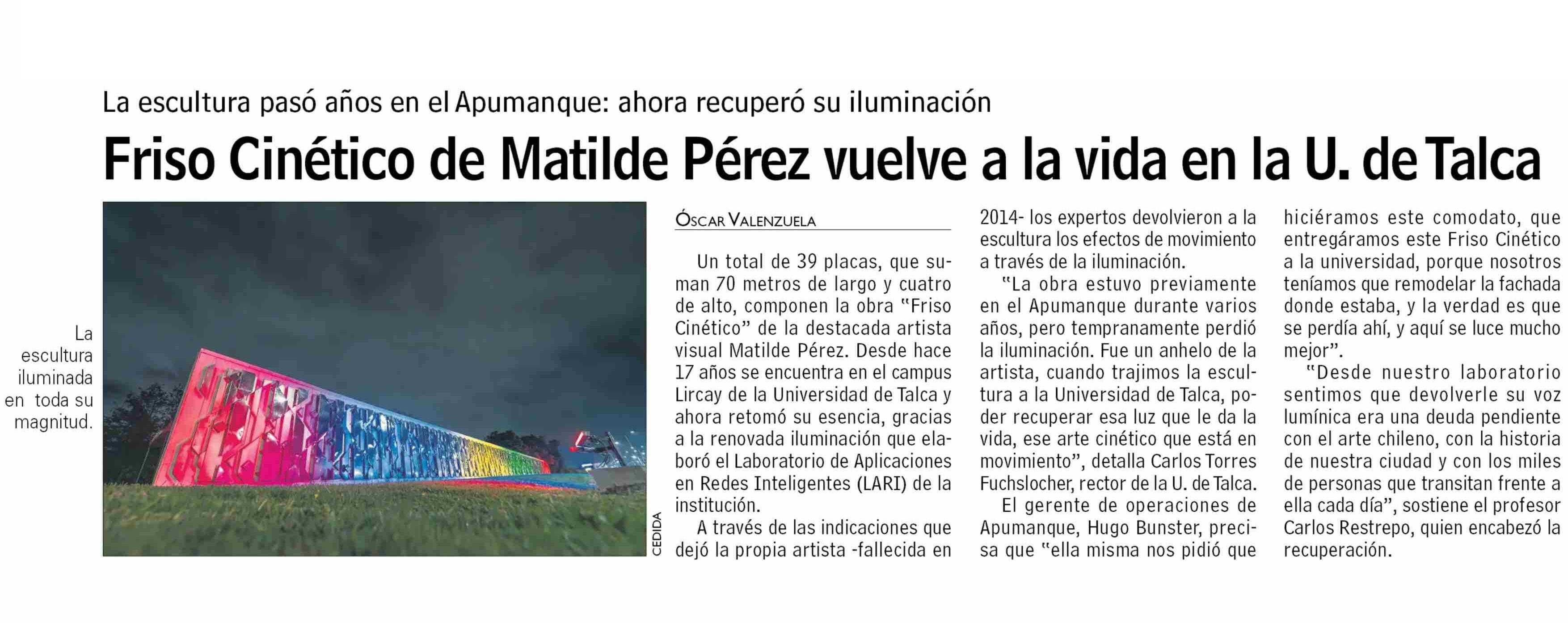 Friso Cinético de Matilde Pérez vuelve a la vida en la U. de Talca 12-06-2025 Las Últimas Noticias |